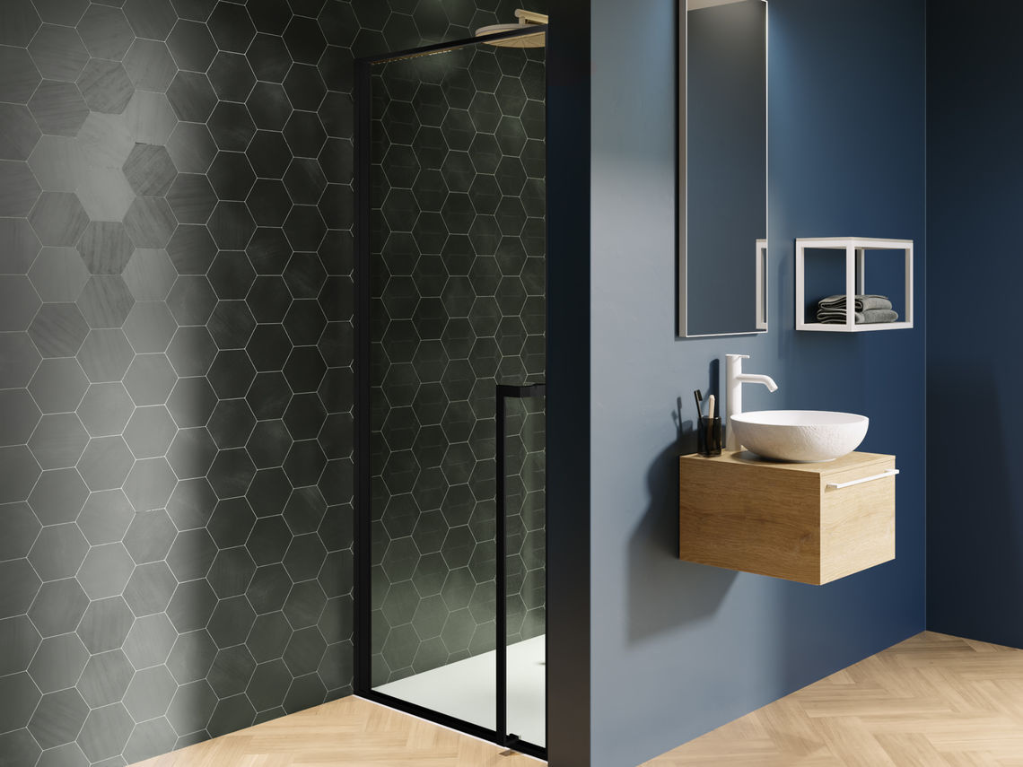 De Riho Lucid GD101 douche nisdeur biedt een strak industrieel ontwerp dat perfect past in een modern interieur. Deze serie is verkrijgbaar in mat zwart en mat wit, met profielen van gepoedercoat aluminium voor extra duurzaamheid. De nisdeur is eenvoudig te installeren en past in verschillende uitvoeringen en maten.