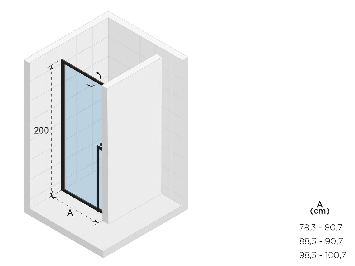 Voorzien van gehard glas met Riho-Shield, biedt de nisdeur optimale veiligheid. De glasdikte van 6 mm zorgt voor stevigheid, terwijl het profiel aan de onderzijde fungeert als dam tegen waterstralen. De deur met lift mechanisme en magnetische sluiting maakt het gebruik gemakkelijk en veilig. De onderdelen zijn omkeerbaar, waardoor de installatie flexibel is.