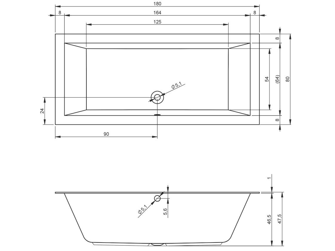 Dit bad is beschikbaar in diverse afmetingen, waardoor het in vrijwel elke badkamer past. De vlakke bodem maakt staan in het bad comfortabel, terwijl de afvoerknop aan de lange kant en de afvoerdop in het midden zorgen voor een efficiënte waterafvoer. Het bad biedt genoeg ruimte voor twee personen, wat het ideaal maakt voor een ontspannen badervaring.