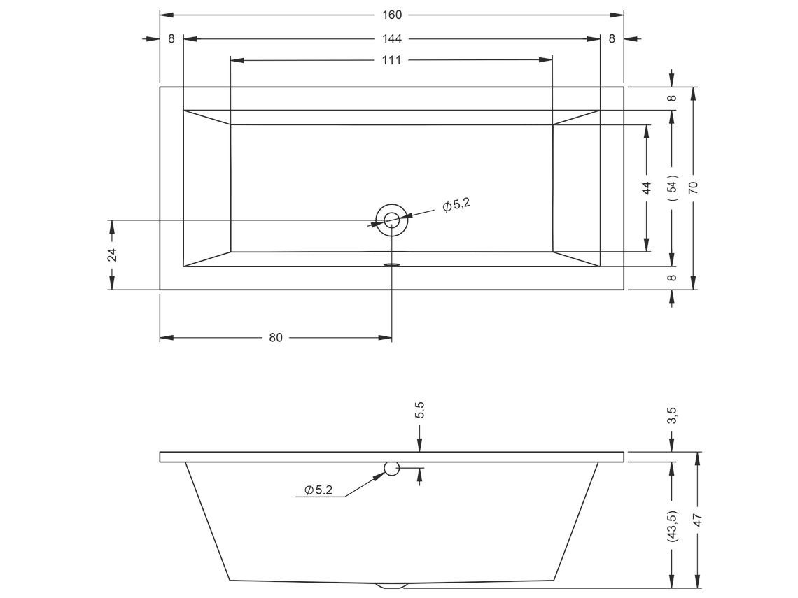 Riho Lusso inbouwbad 160x70cm acryl wit