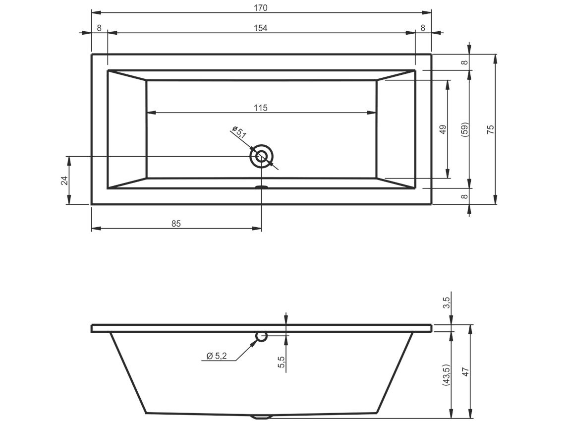 Riho Lusso inbouwbad 170x75cm acryl wit
