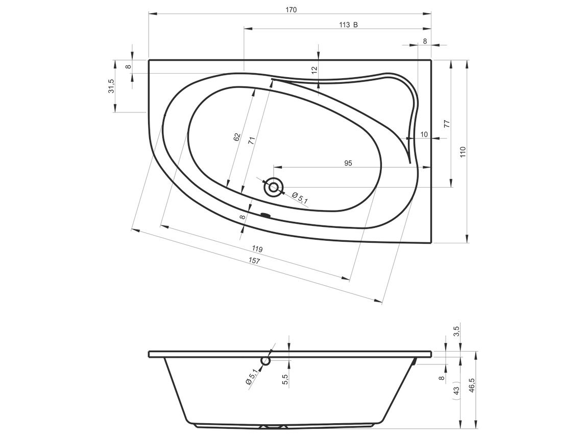Riho Lyra inbouw hoekbad | 170x110cm | links