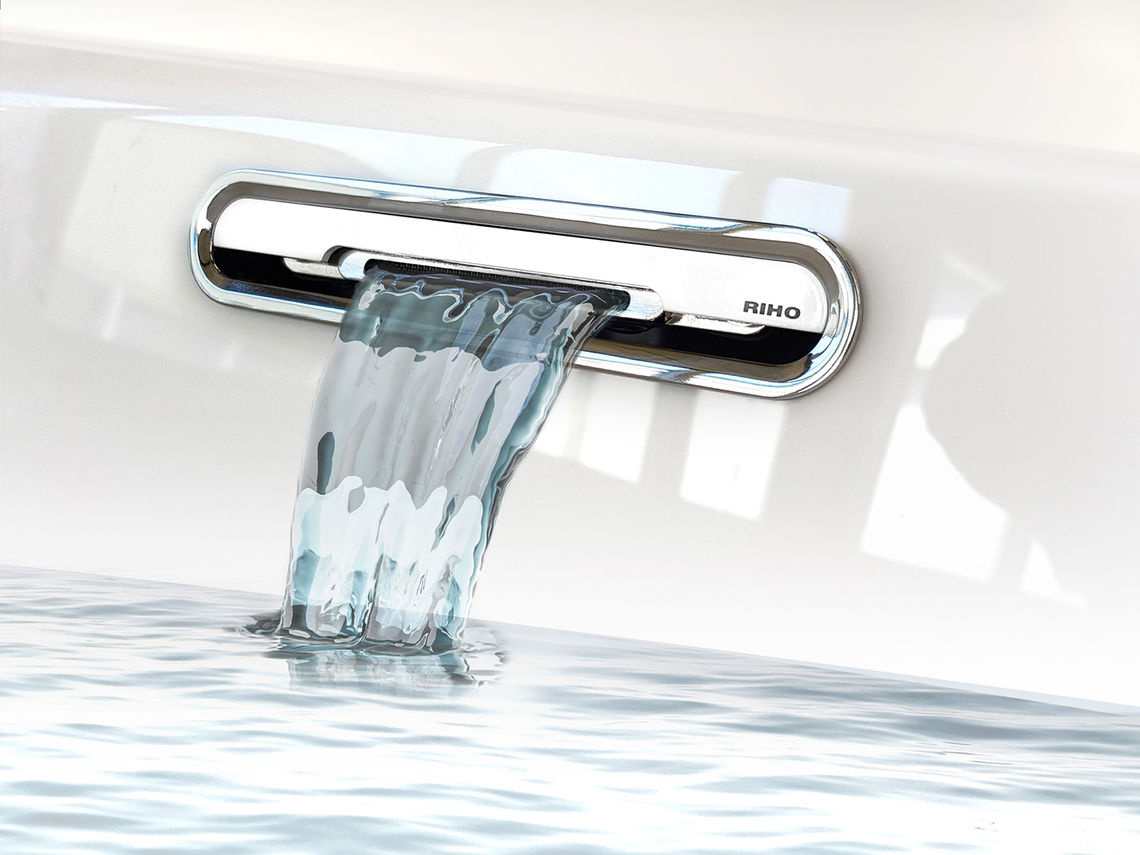 Het Riho Fall systeem is gentegreerd in de badwand en zorgt voor een watertoevoer van 20 liter per minuut. Dit systeem, verkrijgbaar in glanzend chroom en robuust geborsteld staal, maakt losse kranen overbodig en biedt een snelle en efficiënte vulling van je bad. De mengkraan kan op elke gewenste positie in de badkamer worden geplaatst.