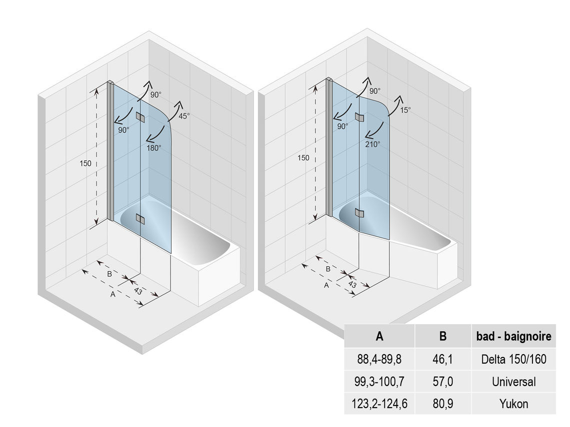 Riho Novik Z500 badwand voor Delta bad 90x150cm chroom