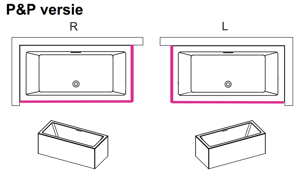 De Plug & Play optie maakt de installatie bijzonder eenvoudig. De zijden van het bad zijn voorzien van naadloos vast verlijmde panelen in hetzelfde acrylmateriaal, waardoor een aparte badombouw niet nodig is. Dit zorgt voor een moderne, frisse look. Let op: whirlpoolsystemen zijn niet compatibel met Plug & Play baden.