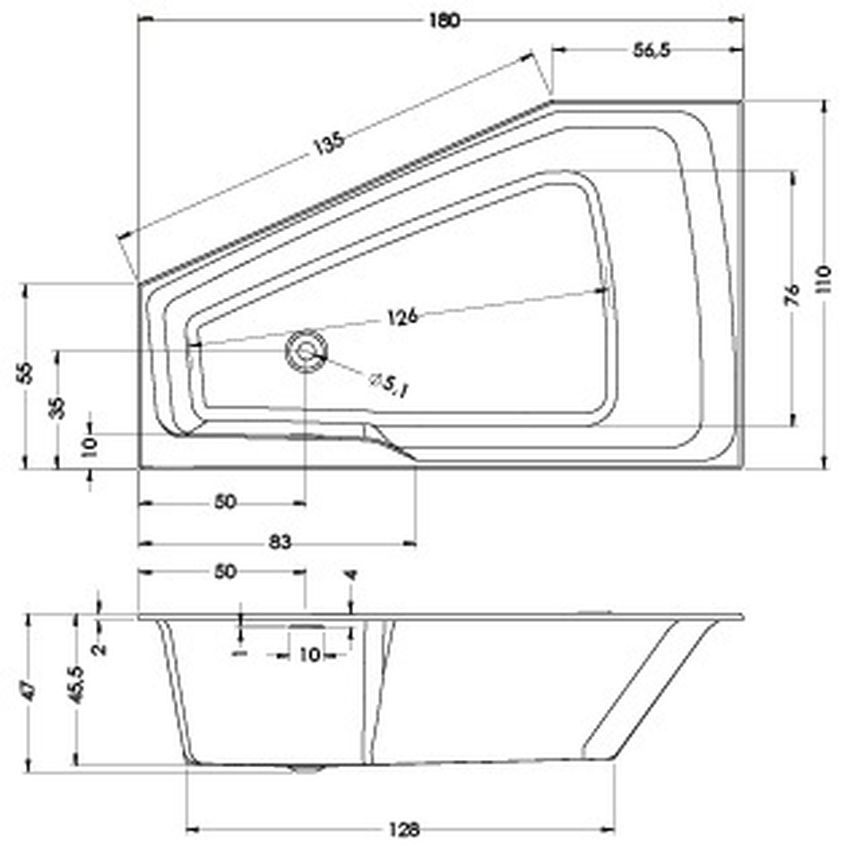 Riho Rethink Space L inbouw hoekbad 180x110cm acryl wit - rechts - Met badvulcombinatie