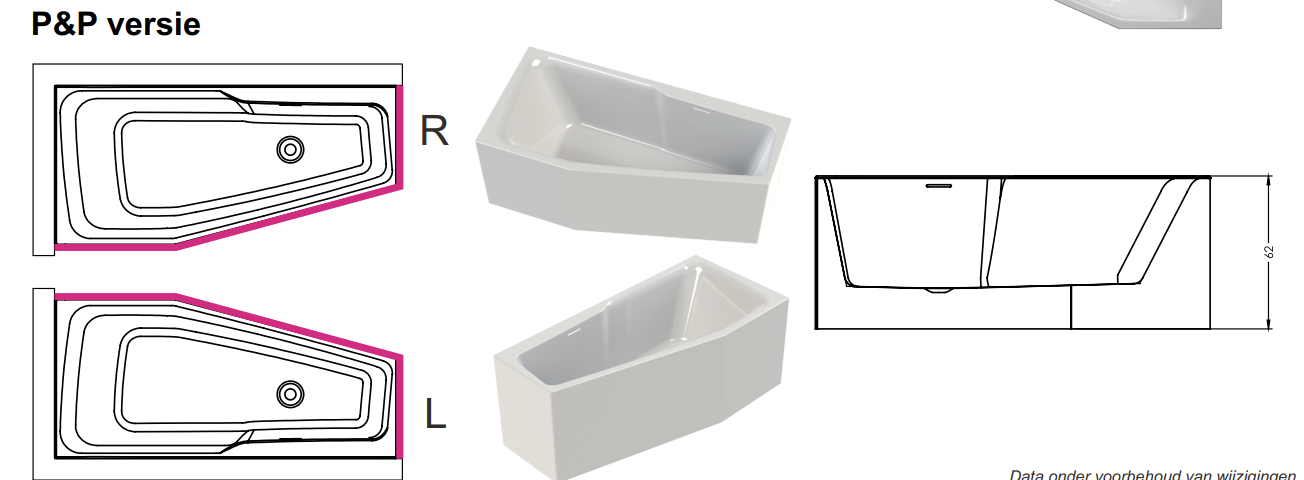 De Plug & Play optie maakt de installatie van dit bad eenvoudig en snel. De lange en korte zijden van het bad zijn voorzien van naadloos verlijmde panelen in hetzelfde acrylmateriaal, waardoor een badombouw niet nodig is. Dit zorgt voor een moderne, frisse look en een gemakkelijke plaatsing in een hoek.