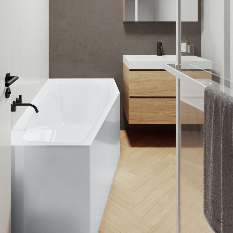 Met de Plug & Play optie is de installatie van dit bad eenvoudig en snel. De lange en korte zijden van het bad zijn voorzien van naadloos verlijmde panelen in hetzelfde acrylmateriaal, waardoor een badombouw niet nodig is. Dit zorgt voor een moderne, frisse look en een gemakkelijke plaatsing in een hoek.