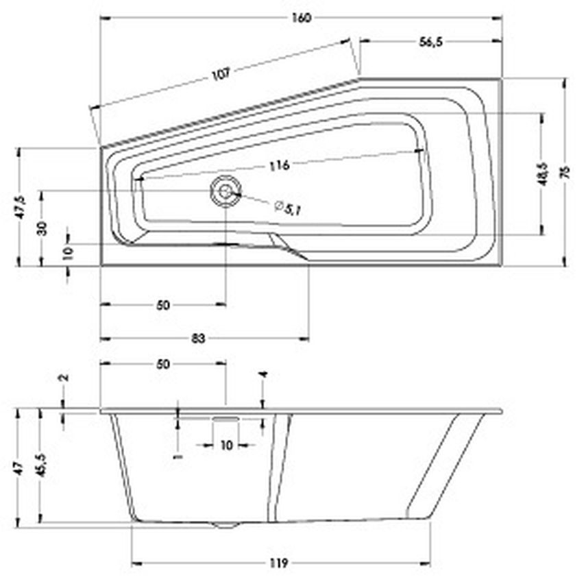 Riho Rethink Space S Plug&Play halfvrijstaand hoekbad - 160x75cm - rechts - Met badvulcombinatie