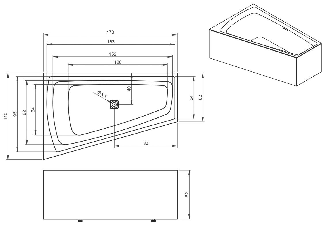Riho Still Smart Plug&Play halfvrijstaand hoekbad 170x110cm | rechts | Met badvulcombinatie