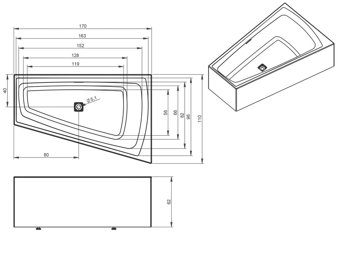 Riho Still Smart Plug&Play halfvrijstaand hoekbad 170x110cm | links | Zonder badvulcombinatie