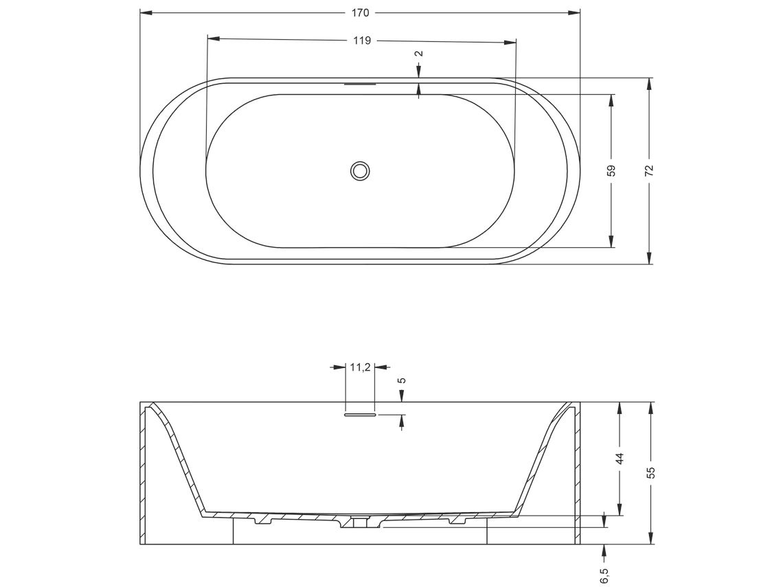 Dit vrijstaande bad is perfect voor één persoon en kan naar eigen wens in de ruimte worden geplaatst. De afvoer in het midden zorgt voor extra comfort en flexibiliteit. Het bad wordt geleverd inclusief een pop-up plug met cover in dezelfde kleur als het bad en een sifon voor vrijstaande baden.