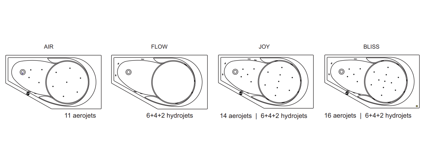 Bij de aanschaf van het inbouwbad kun je kiezen uit vier geavanceerde whirlpoolsystemen. Deze systemen bieden ontspannende bubbels, massagestralen en verlichting om je badervaring te optimaliseren.