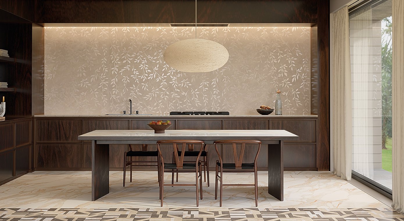 Maak kennis met de Roma Stone Calacatta Oro matte tegels. Deze stijlvolle keramische vloertegels van FAP Ceramiche, met hun natuursteenlook en matte gouden afwerking, brengen een modern en toch tijdloos karakter naar uw vloeren.