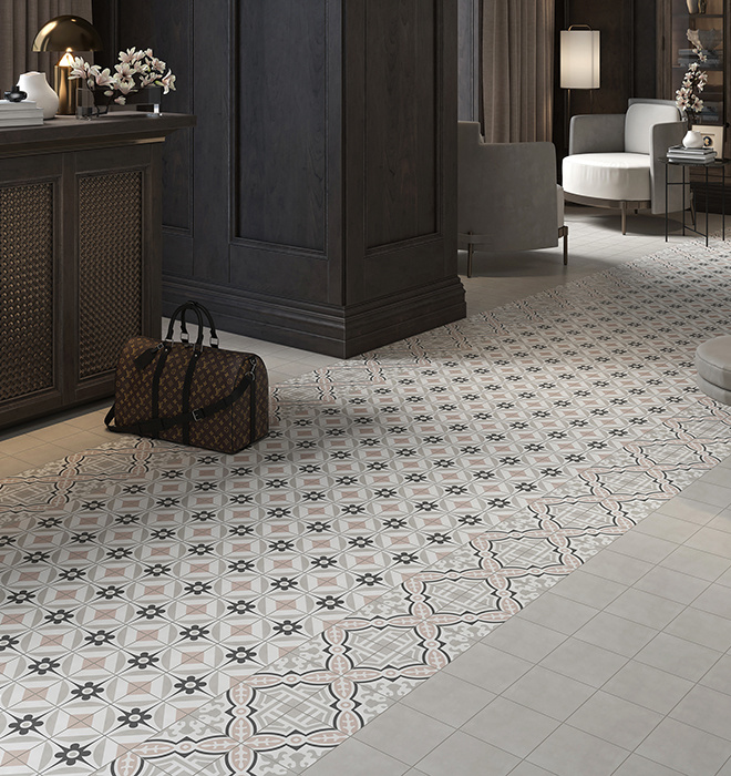 Laat uw ruimte stralen met de Sartoria Decorata 02 mat vloertegel. Het Italiaanse vakmanschap en oog voor detail zorgen voor een unieke uitstraling. Maak van uw vloer een waar kunstwerk en omarm de schoonheid van imperfectie. Met deze tegels geeft u elke kamer een persoonlijke touch.