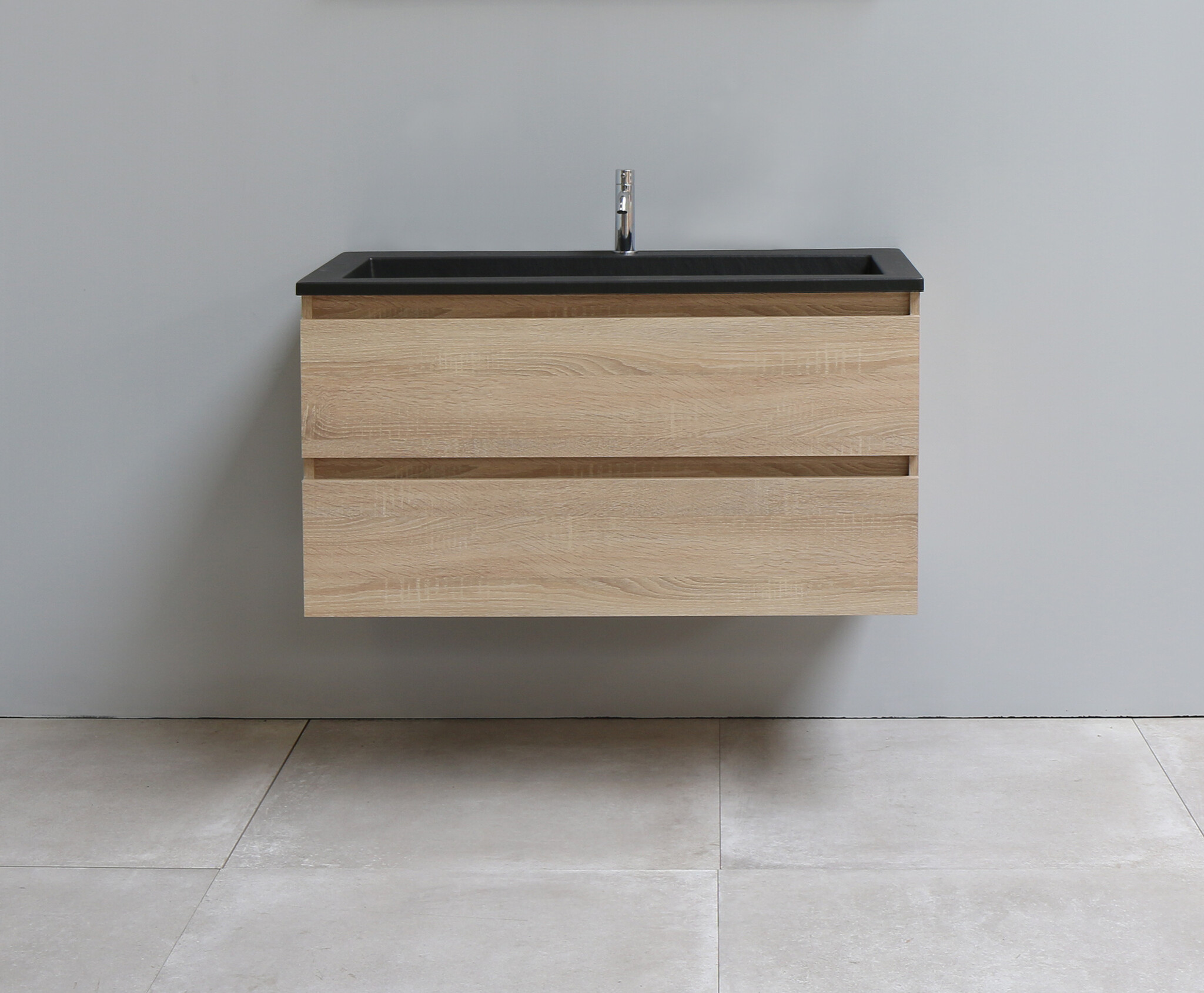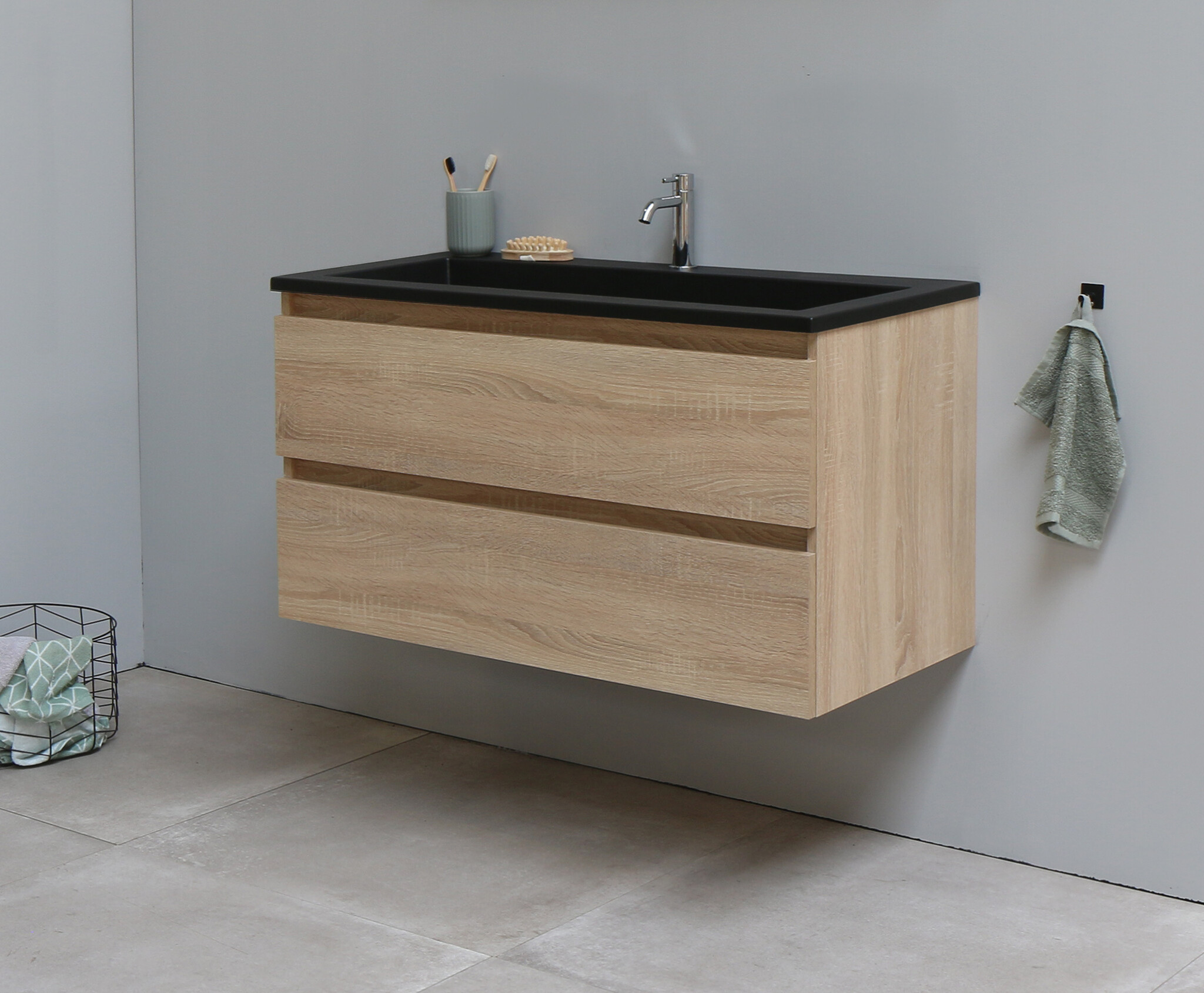 Solidline badkamermeubelset | 100cm | Acryl | Mat zwart | 1 | Eiken | Zonder spiegel | Bouwpakket