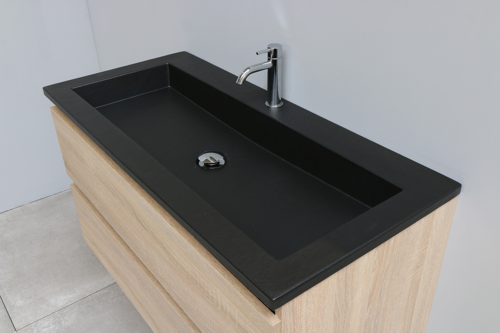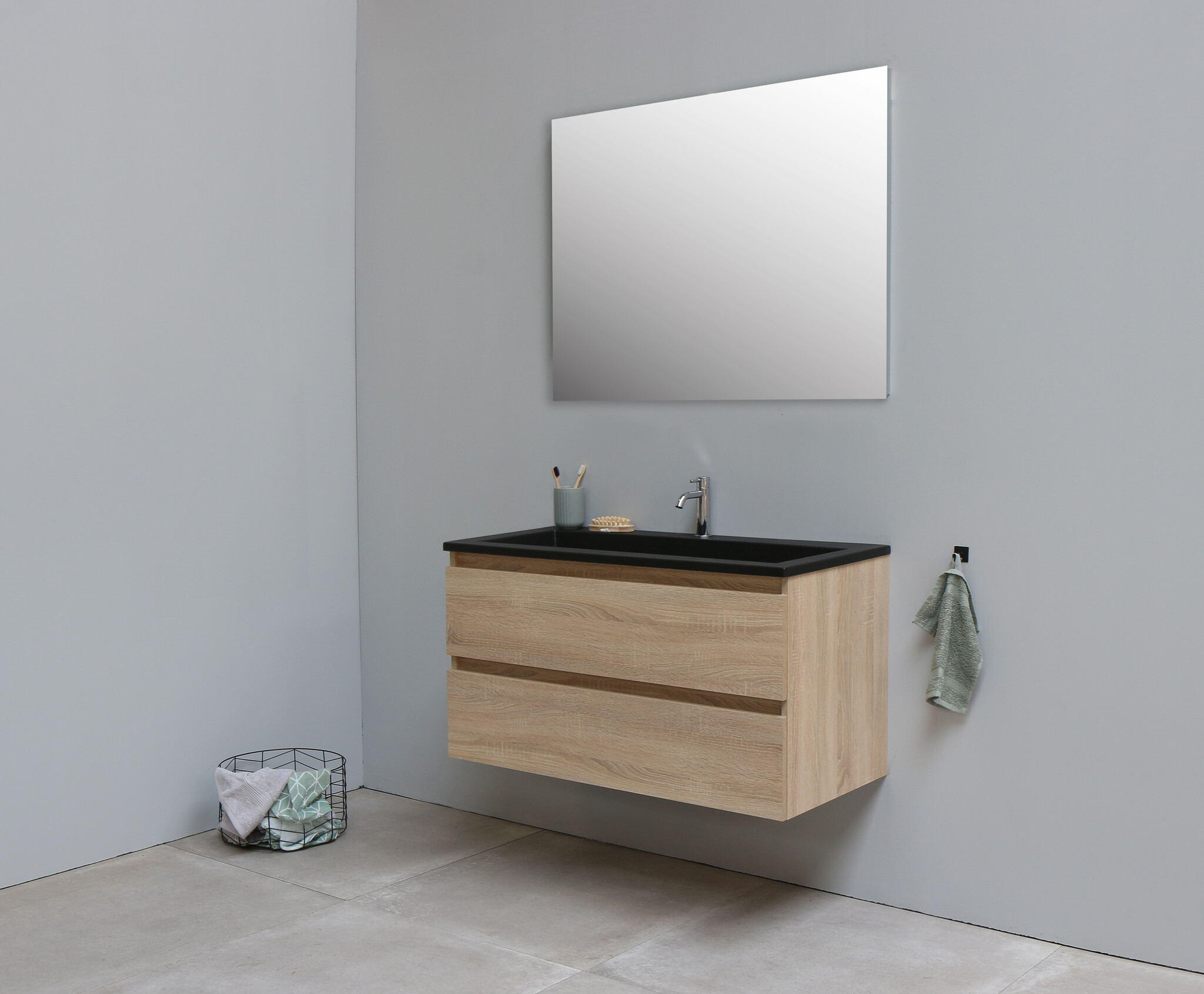 Solidline badkamermeubelset | 100cm | Acryl | Mat zwart | 1 | Eiken | Standaard spiegel | Bouwpakket