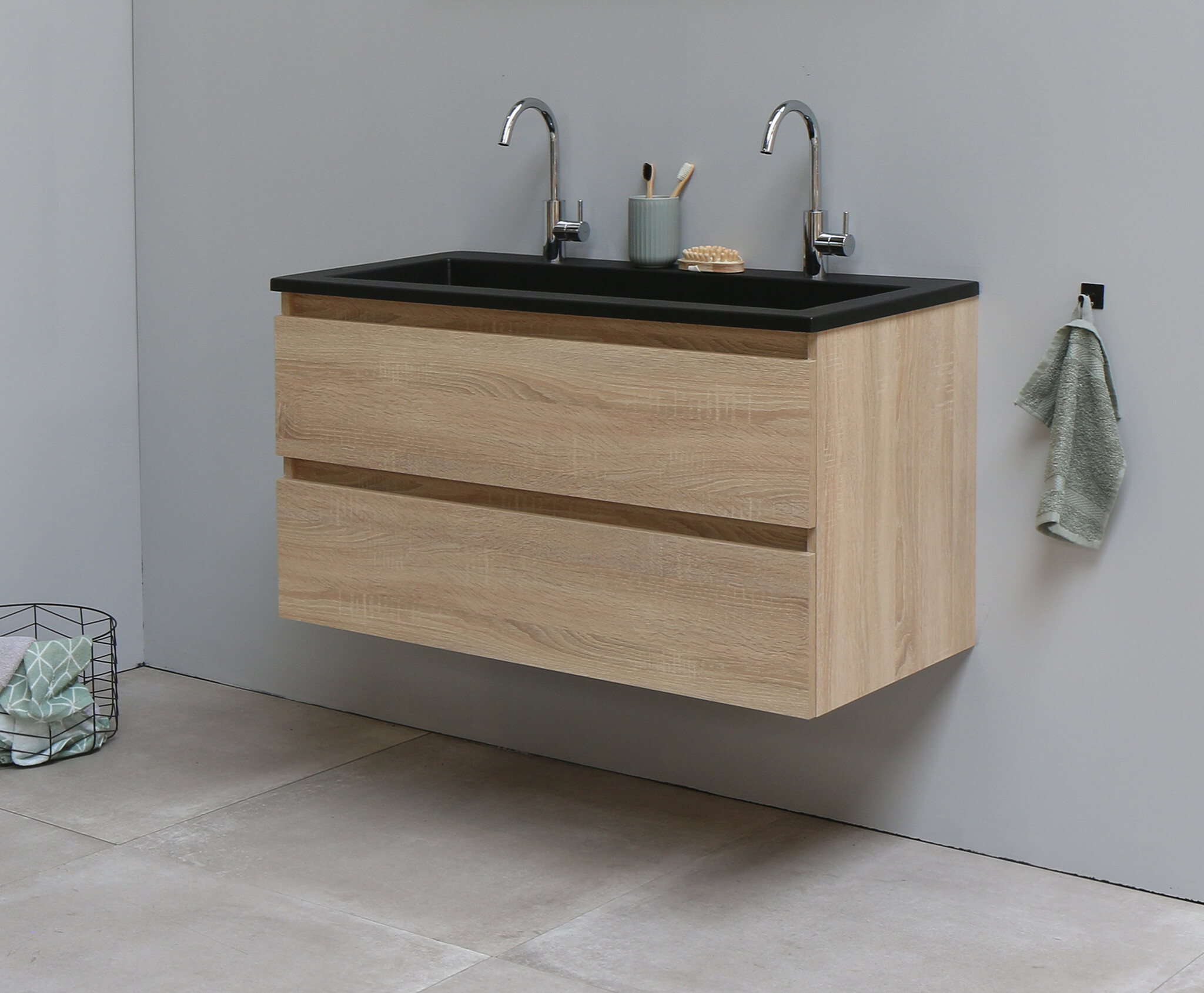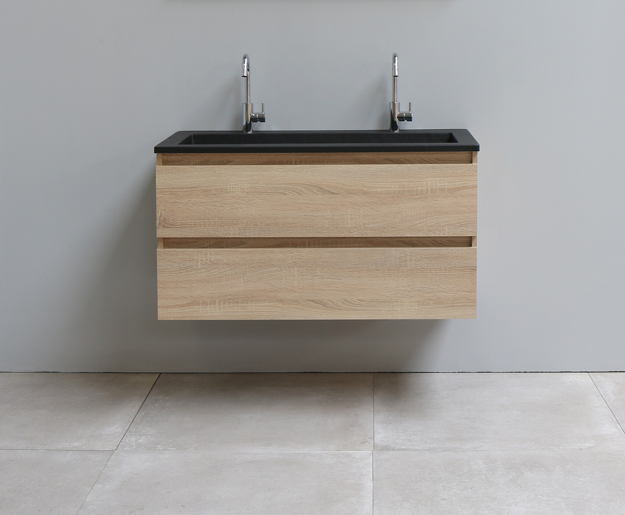 Solidline badkamermeubelset | 100cm | Acryl | Mat zwart | 2 | Eiken | Zonder spiegel | Bouwpakket