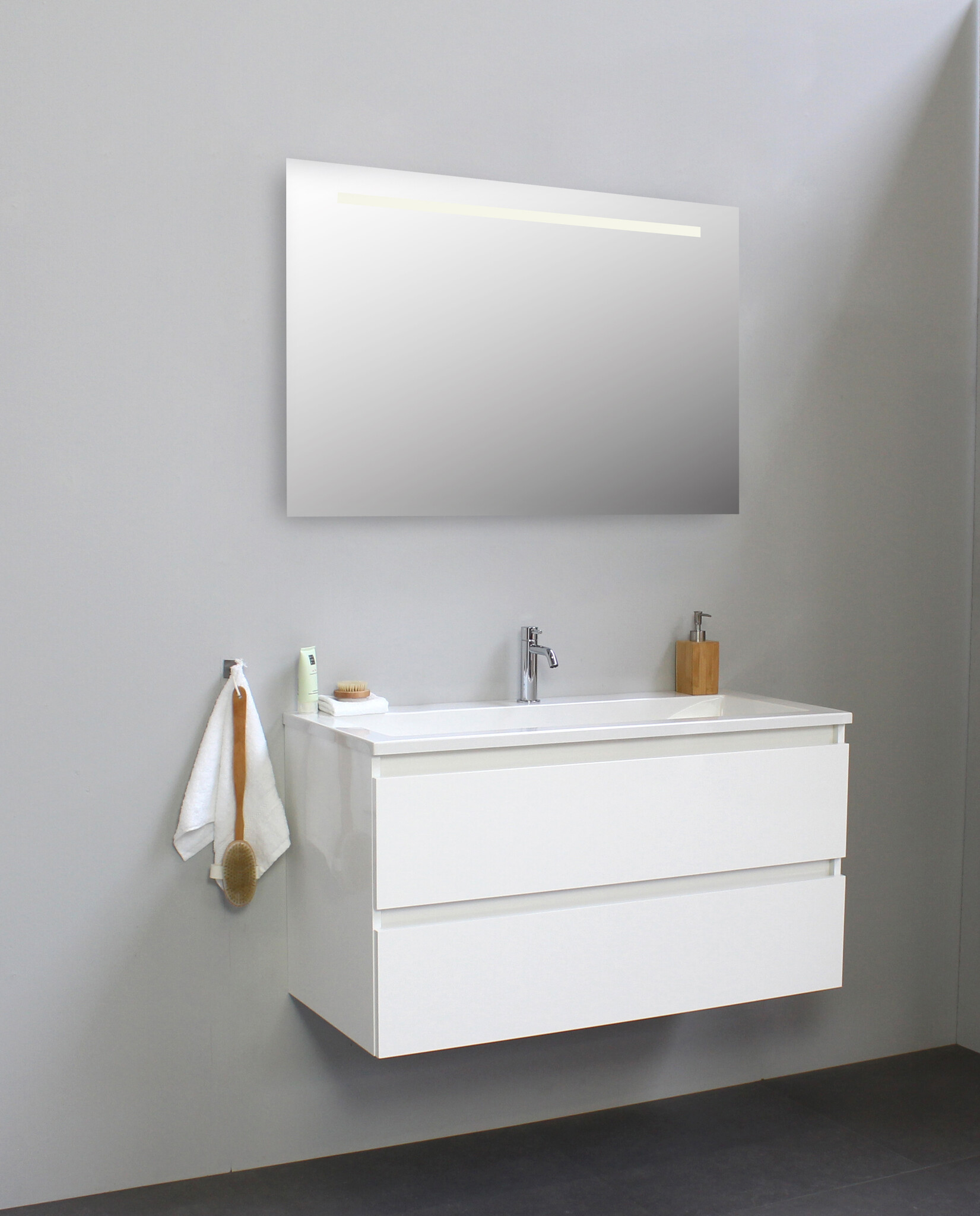 Solidline badkamermeubelset | 100cm | Acryl | Wit | 1 | Hoogglans wit | Spiegel met LED verlichting | Bouwpakket
