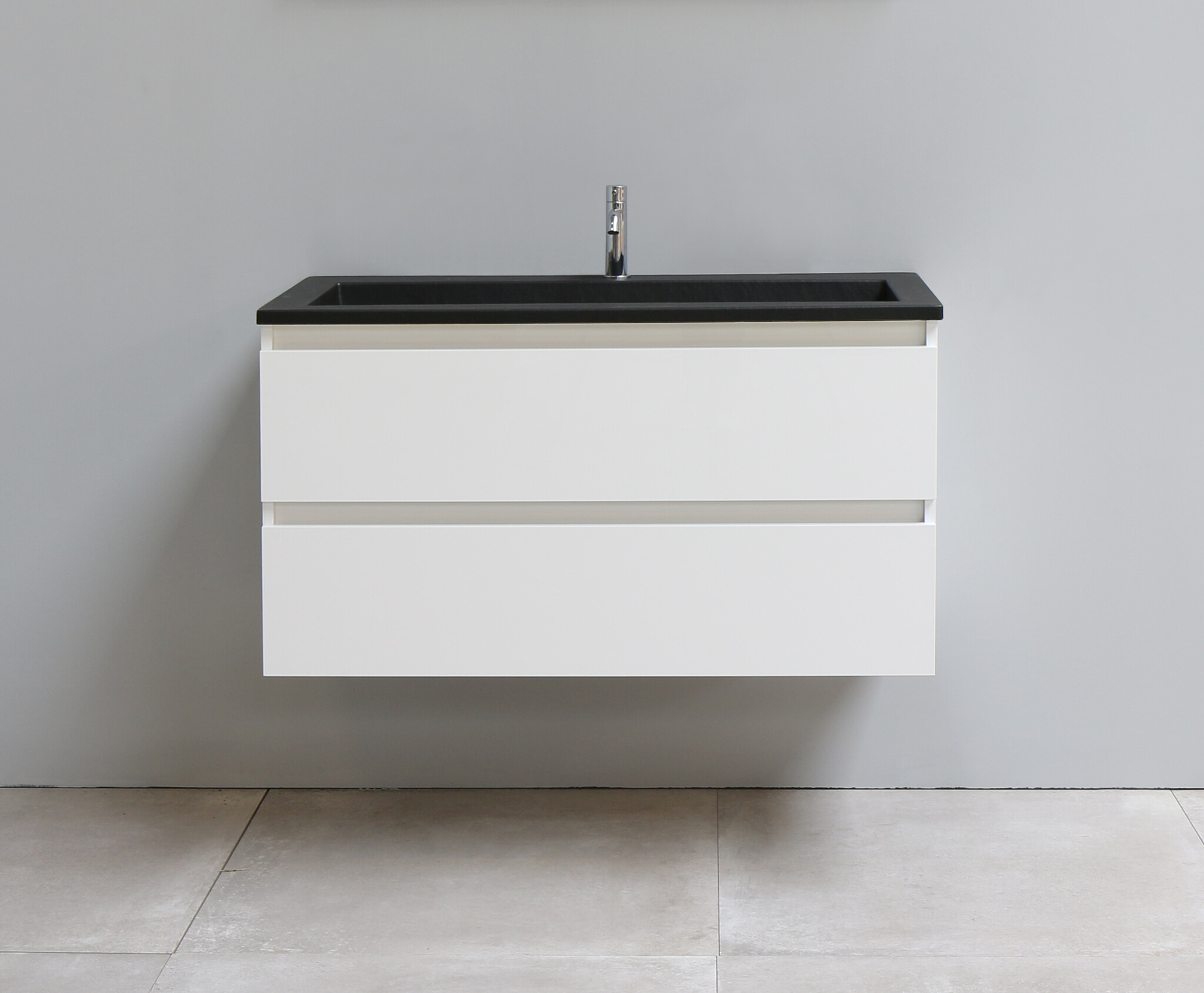 Solidline badkamermeubelset | 100cm | Acryl | Mat zwart | 1 | Hoogglans wit | Zonder spiegel | Bouwpakket
