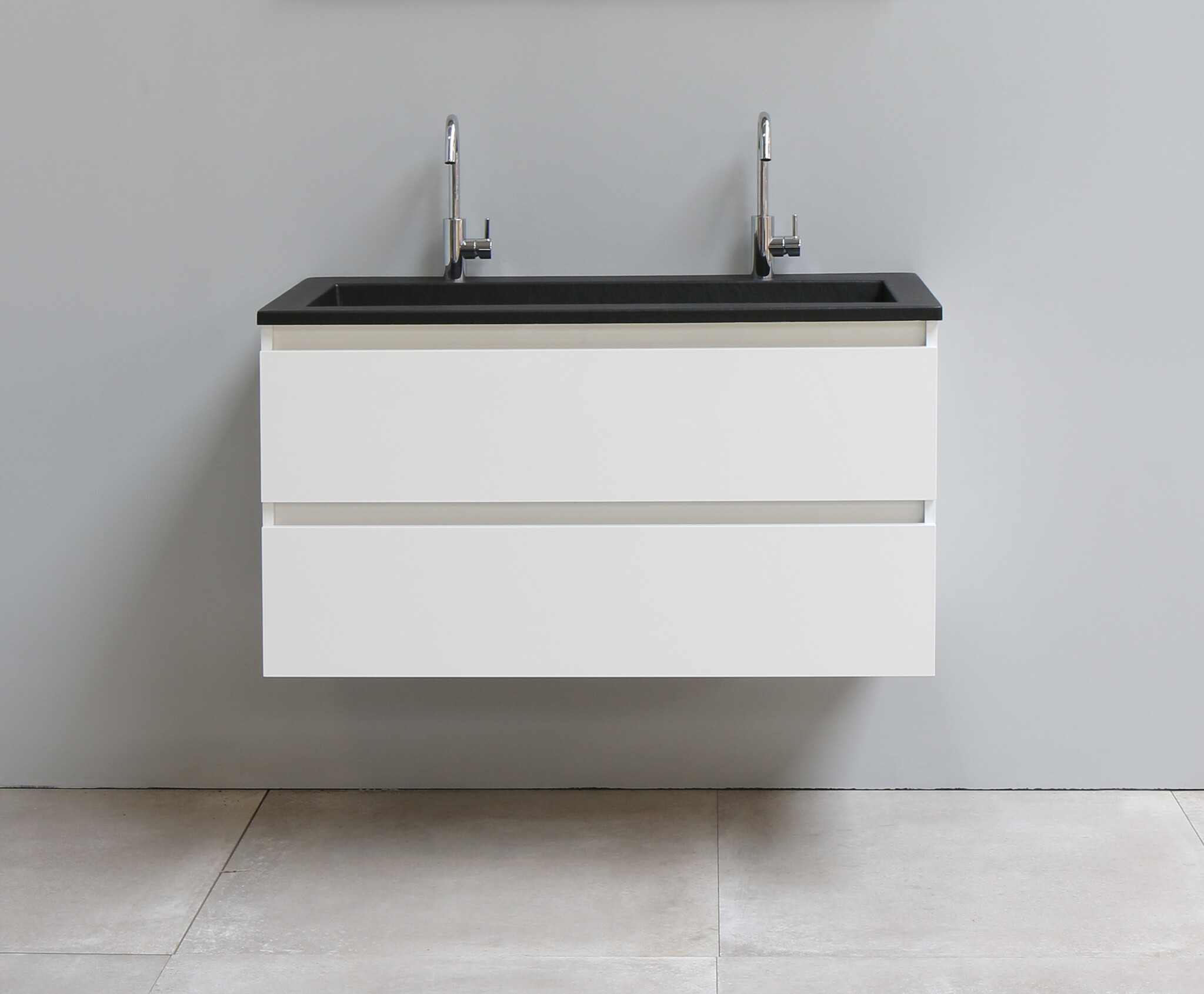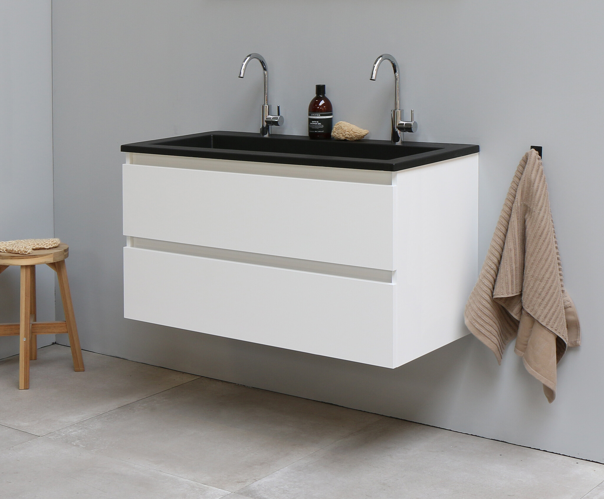 Solidline badkamermeubelset | 100cm | Acryl | Mat zwart | 2 | Hoogglans wit | Zonder spiegel | Bouwpakket