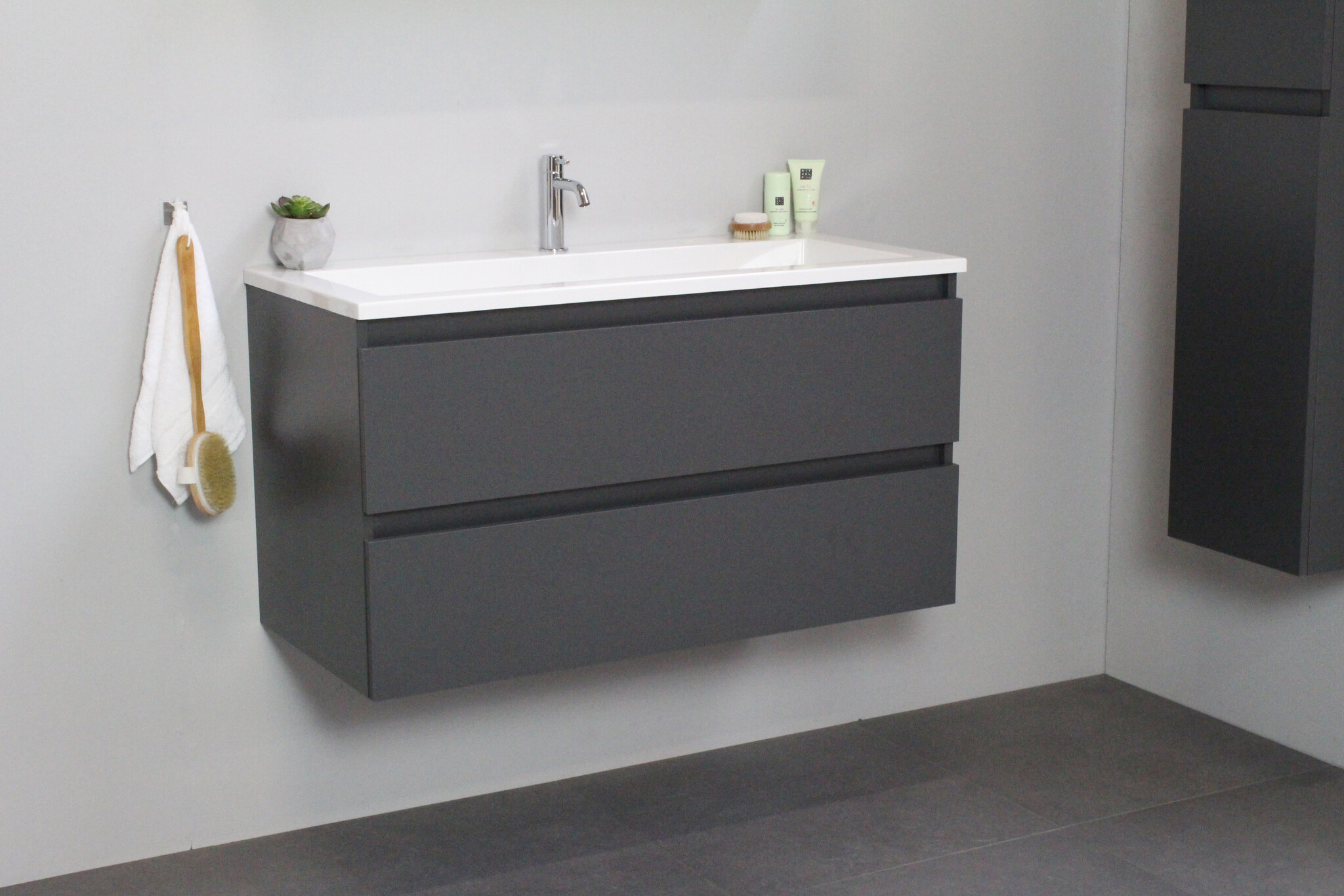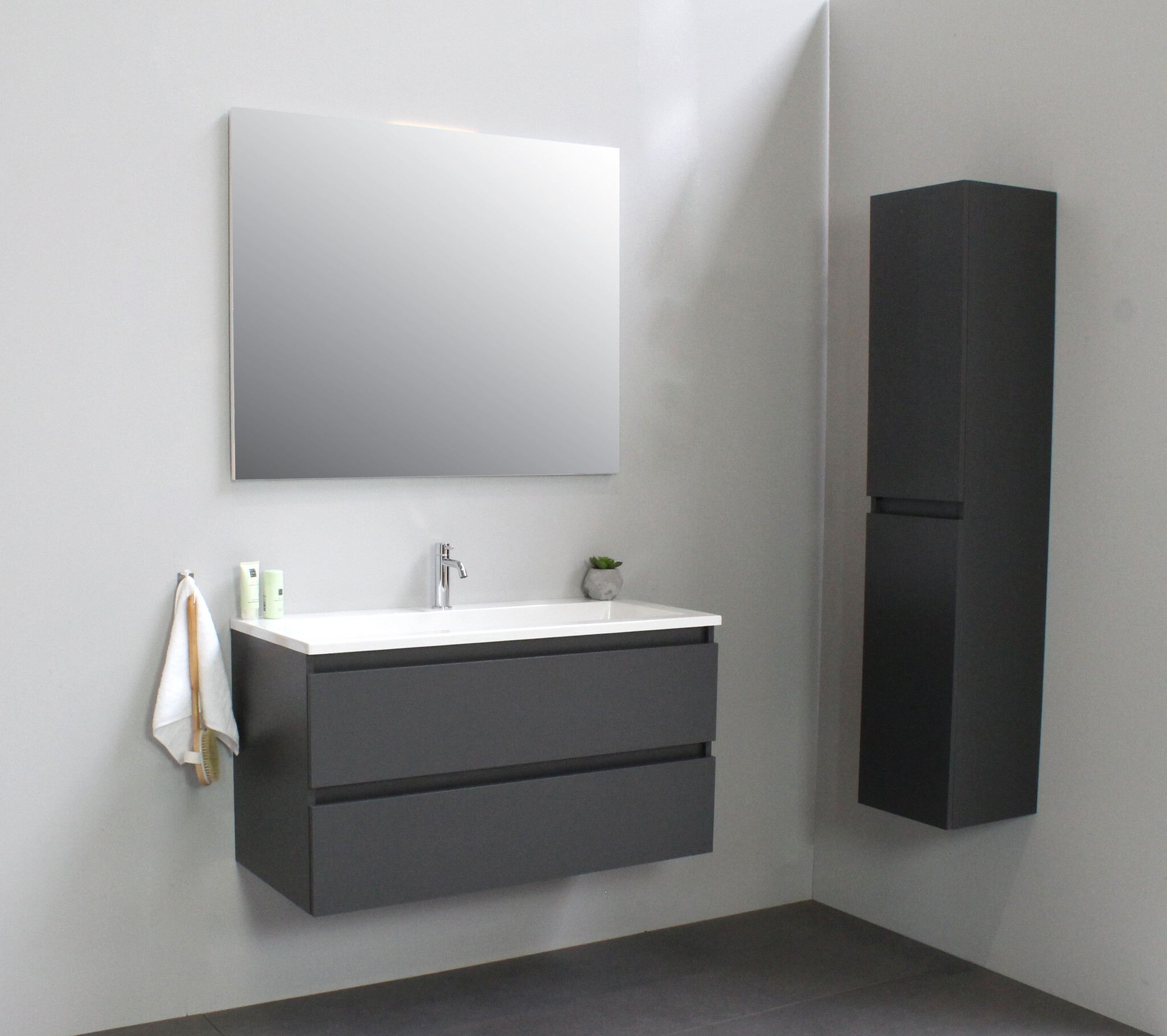 Solidline badkamermeubelset | 100cm | Acryl | Wit | 1 | Mat antraciet | Zonder spiegel | Bouwpakket