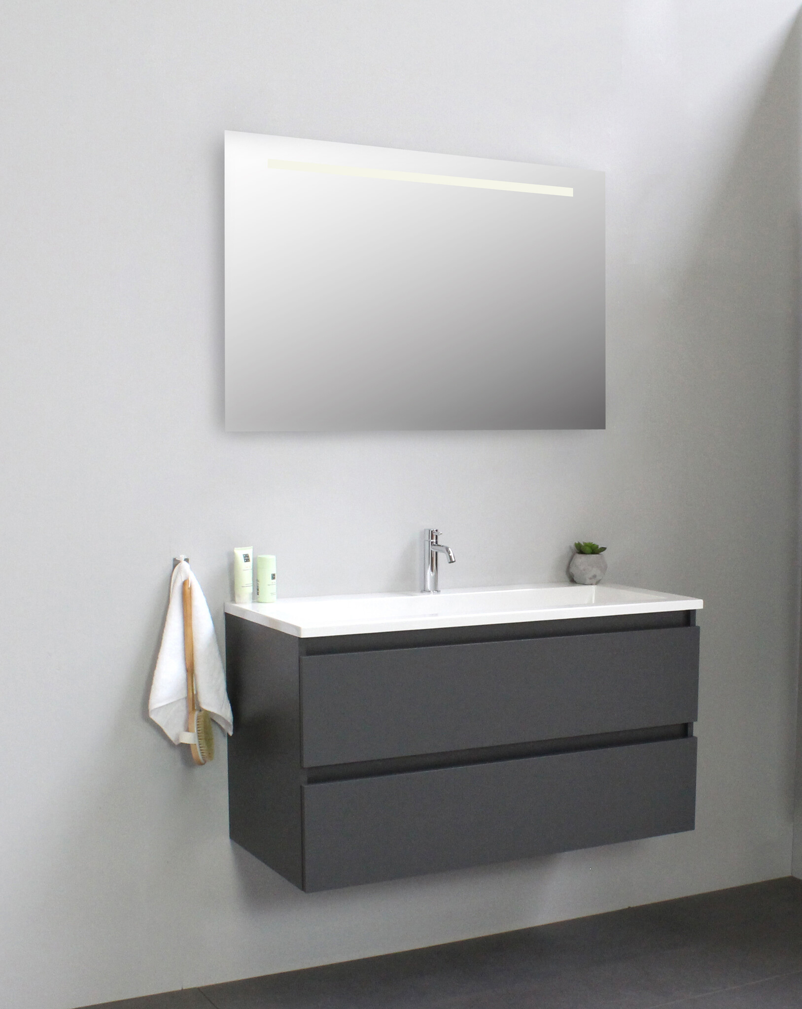 Solidline badkamermeubelset | 100cm | Acryl | Wit | 1 | Mat antraciet | Spiegel met LED verlichting | Bouwpakket