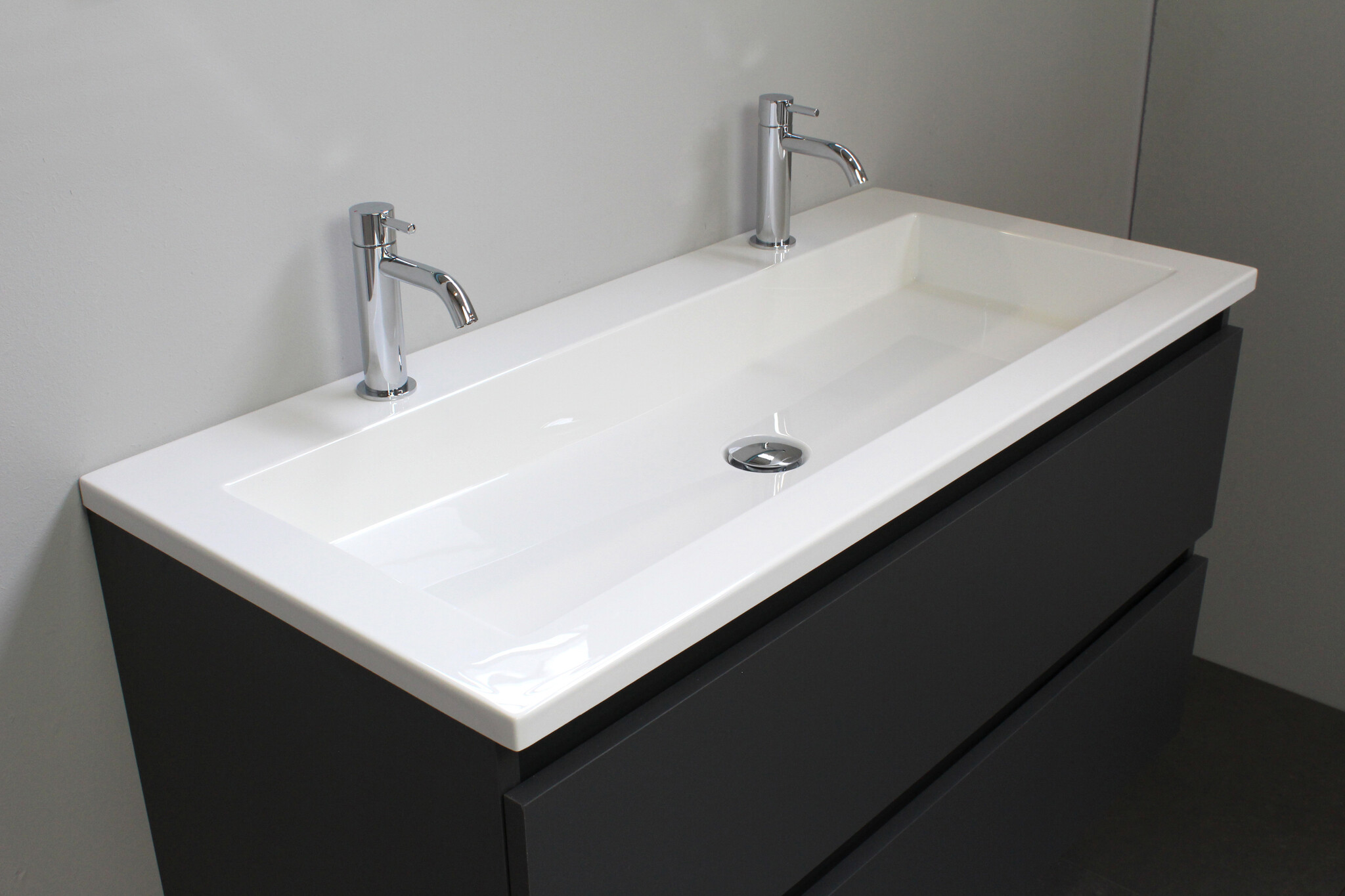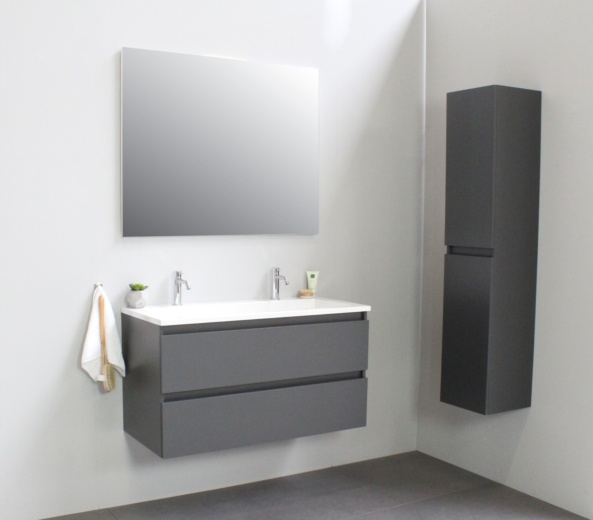 Solidline badkamermeubelset | 100cm | Acryl | Wit | 2 | Mat antraciet | Zonder spiegel | Bouwpakket