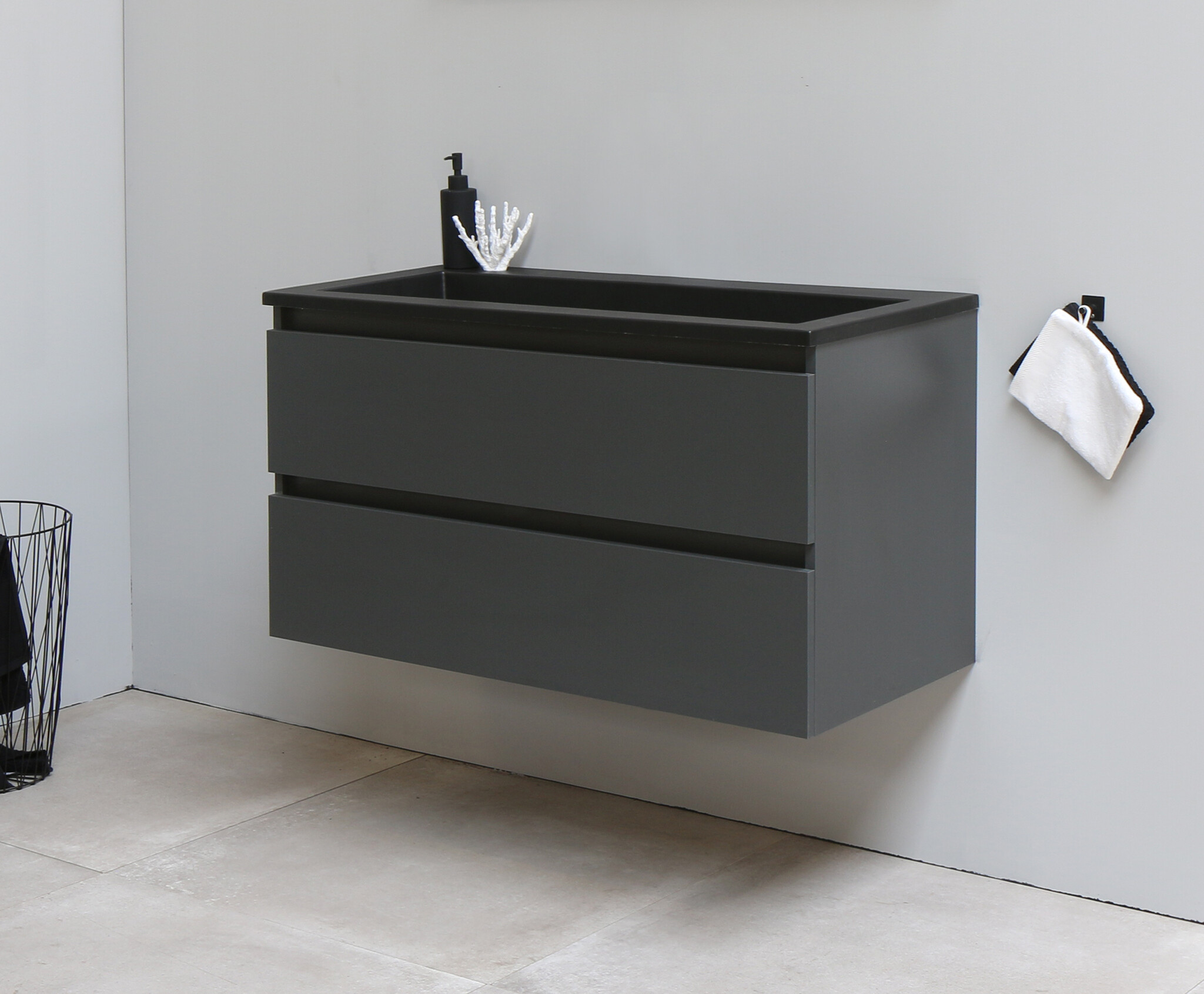 Solidline badkamermeubelset | 100cm | Acryl | Mat zwart | 0 | Mat antraciet | Zonder spiegel | Bouwpakket