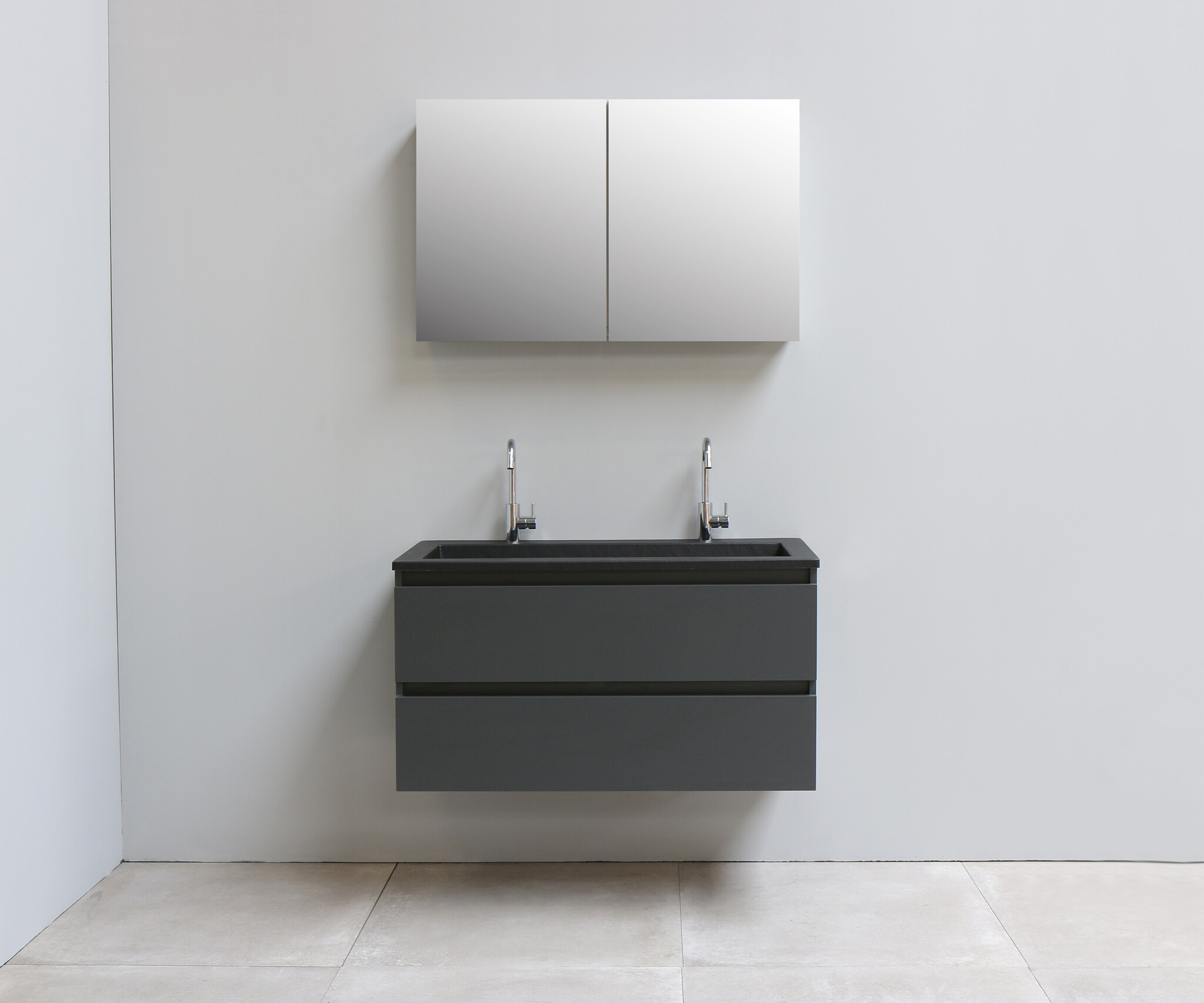 Solidline badkamermeubelset | 100cm | Acryl | Mat zwart | 2 | Mat antraciet | Met spiegelkast | Bouwpakket