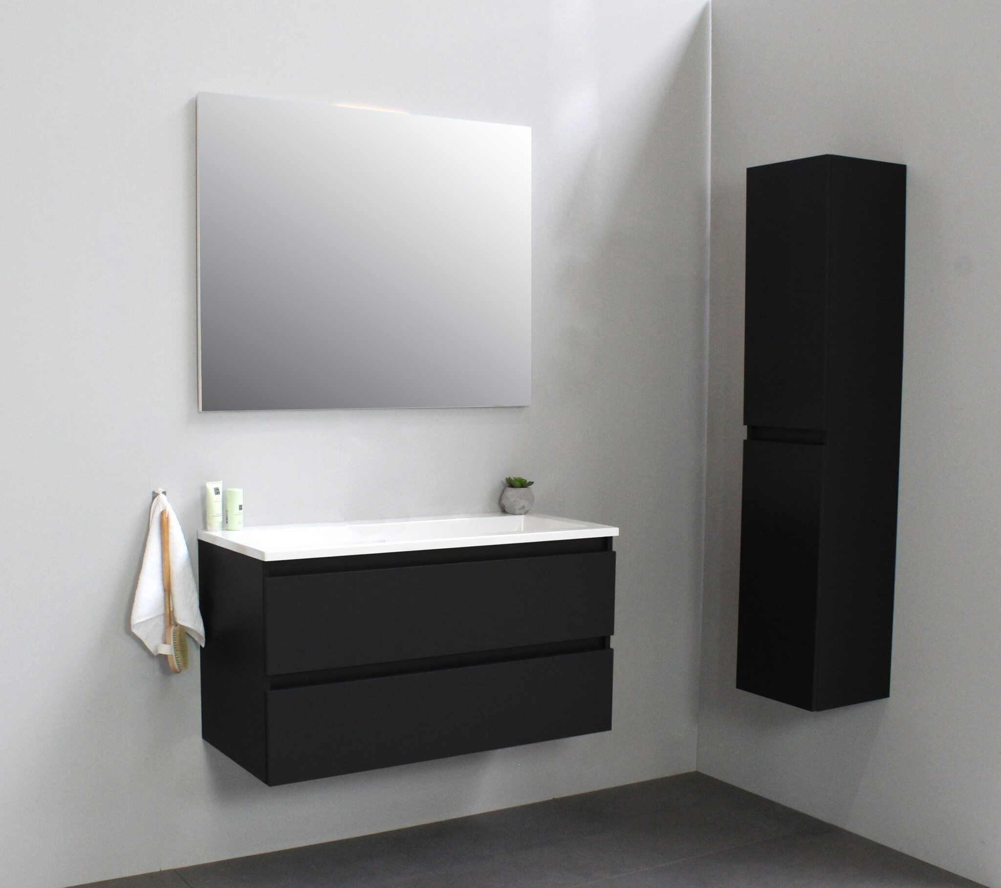Solidline badkamermeubelset | 100cm | Acryl | Wit | 0 | Mat zwart | Standaard spiegel | Bouwpakket