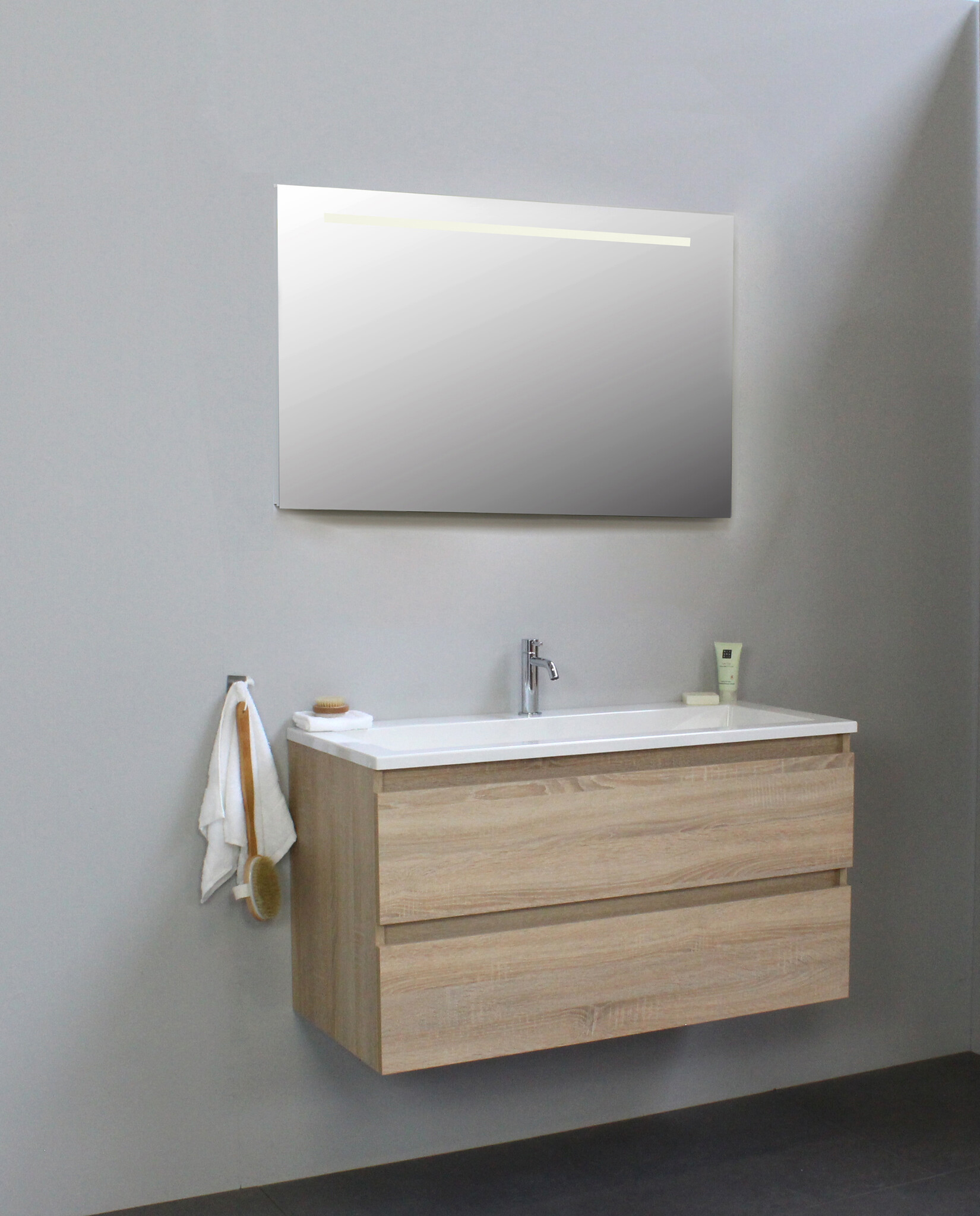 Solidline badkamermeubelset | 100cm | Acryl | Wit | 1 | Eiken | Spiegel met LED verlichting | Geassembleerd