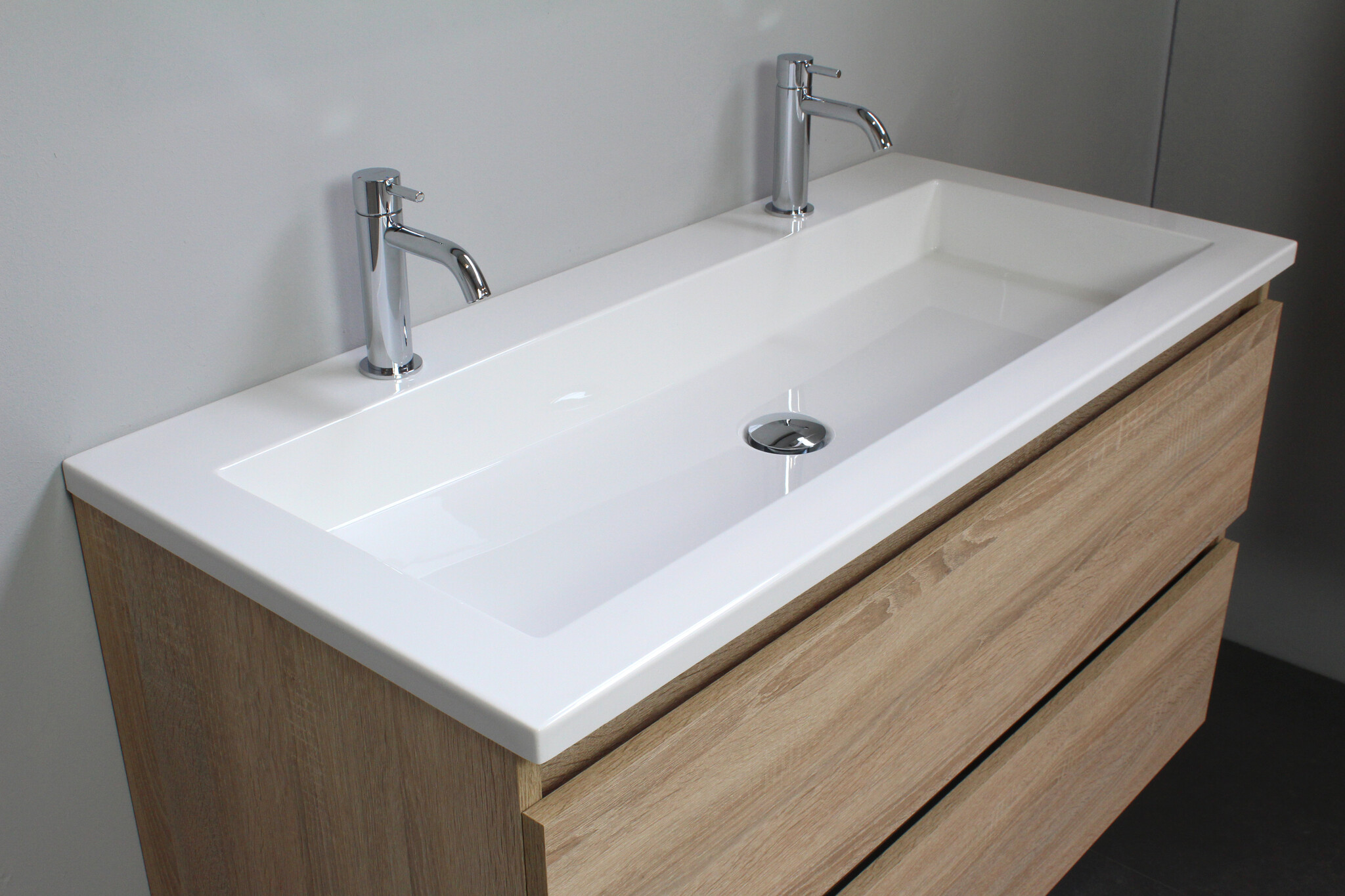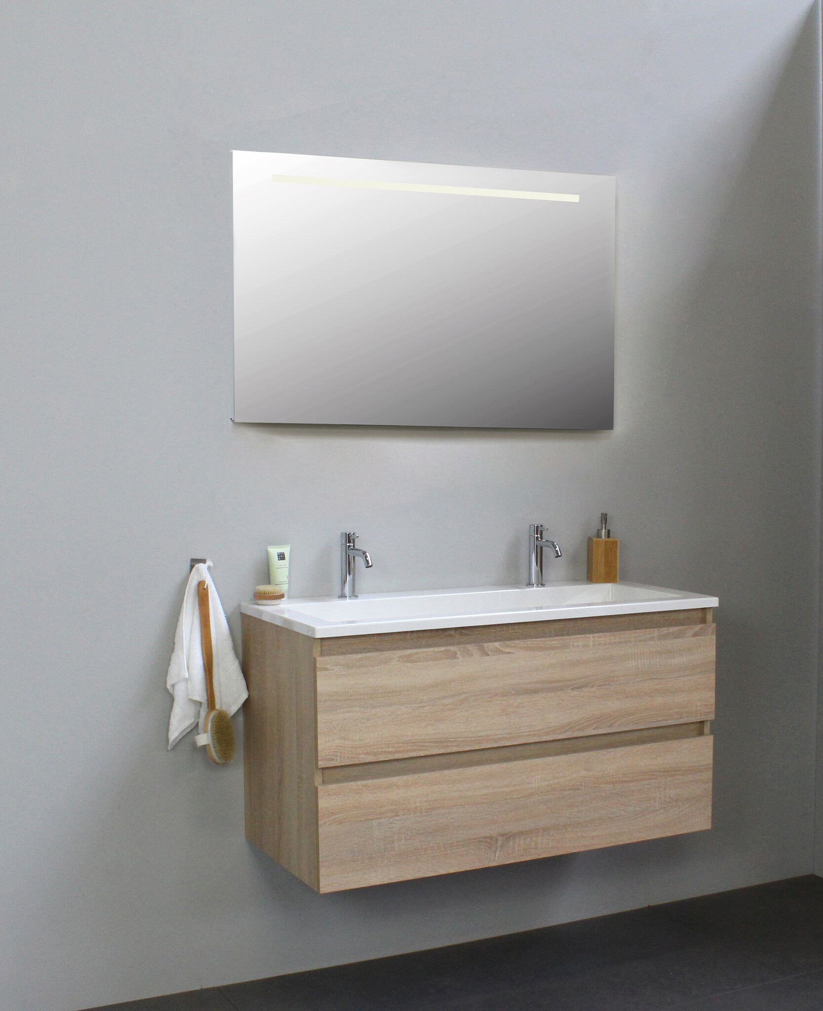 Offerte aanvraag voor Solidline badkamermeubelset | 100cm | Acryl | Wit | 2 | Eiken | Spiegel met LED verlichting | Geassembleerd