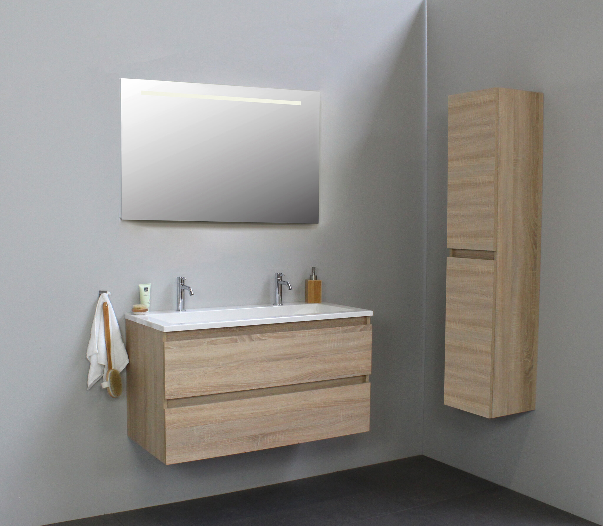 Solidline badkamermeubelset | 100cm | Acryl | Wit | 2 | Eiken | Spiegel met LED verlichting | Geassembleerd