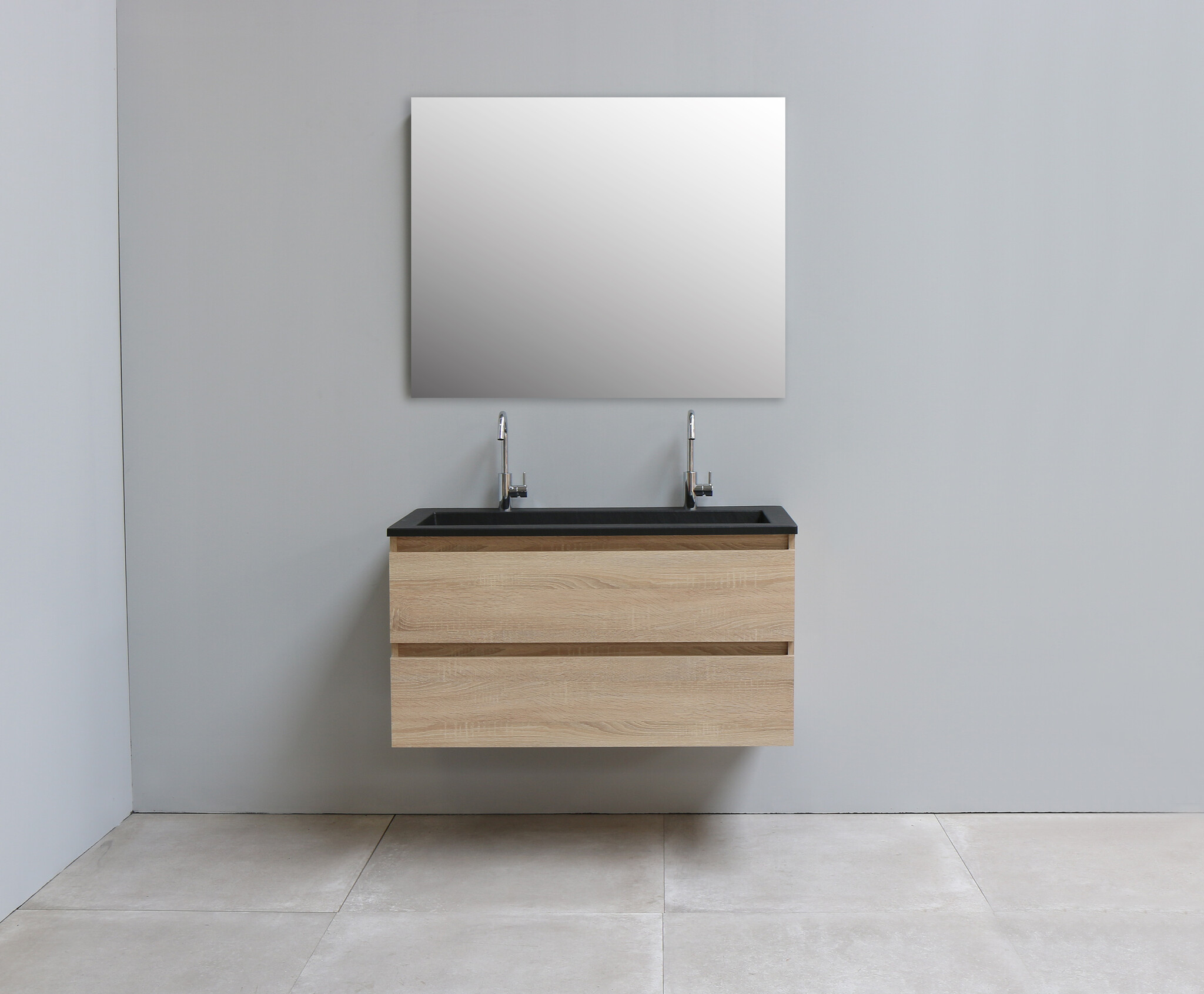 Solidline badkamermeubelset | 100cm | Acryl | Mat zwart | 2 | Eiken | Standaard spiegel | Geassembleerd