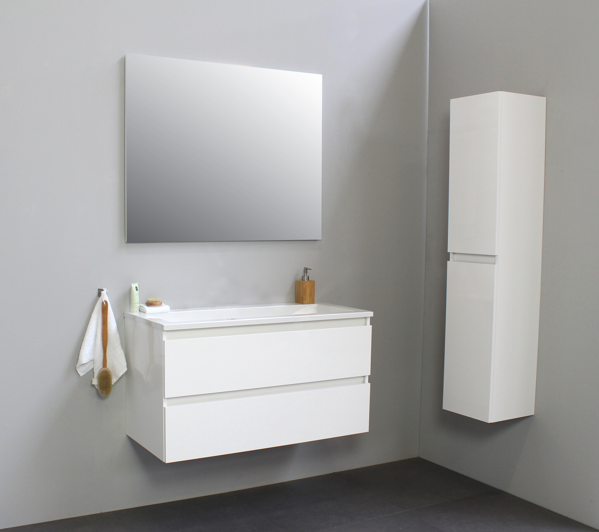 Solidline badkamermeubelset | 100cm | Acryl | Wit | 0 | Hoogglans wit | Standaard spiegel | Geassembleerd