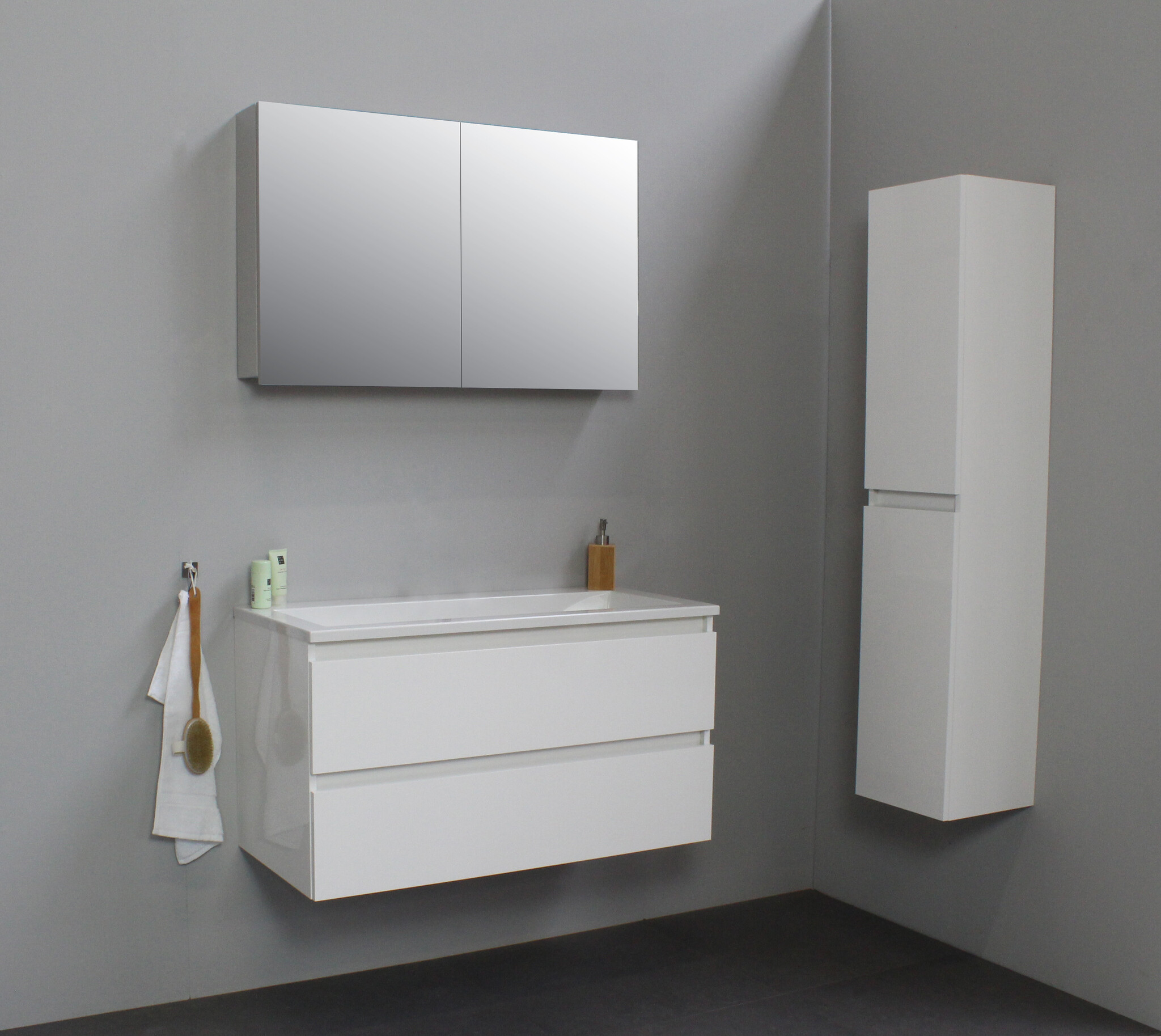 Solidline badkamermeubelset | 100cm | Acryl | Wit | 0 | Hoogglans wit | Met spiegelkast | Geassembleerd