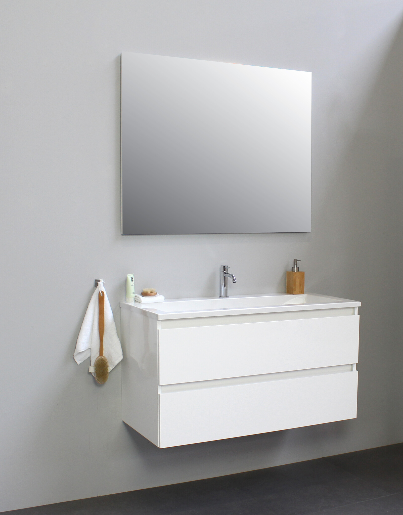 Solidline badkamermeubelset | 100cm | Acryl | Wit | 1 | Hoogglans wit | Standaard spiegel | Geassembleerd