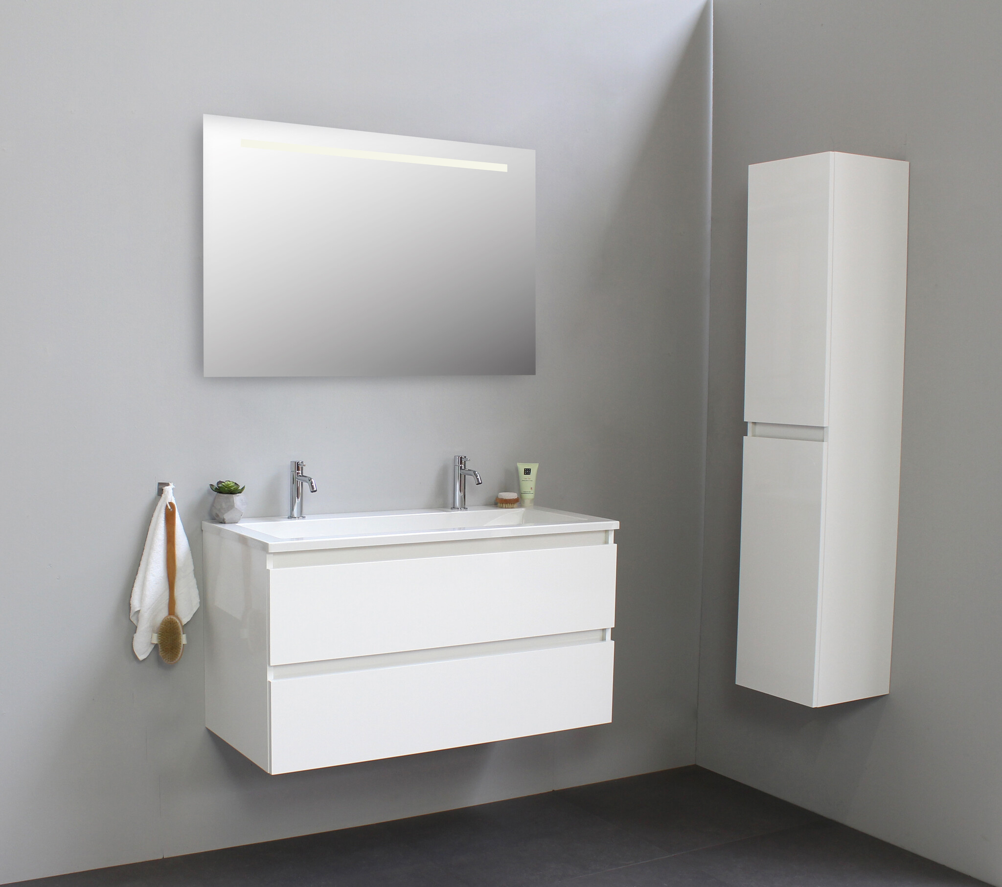 Solidline badkamermeubelset - 100cm - Acryl - Wit - 2 - Hoogglans wit - Spiegel met LED verlichting - Geassembleerd