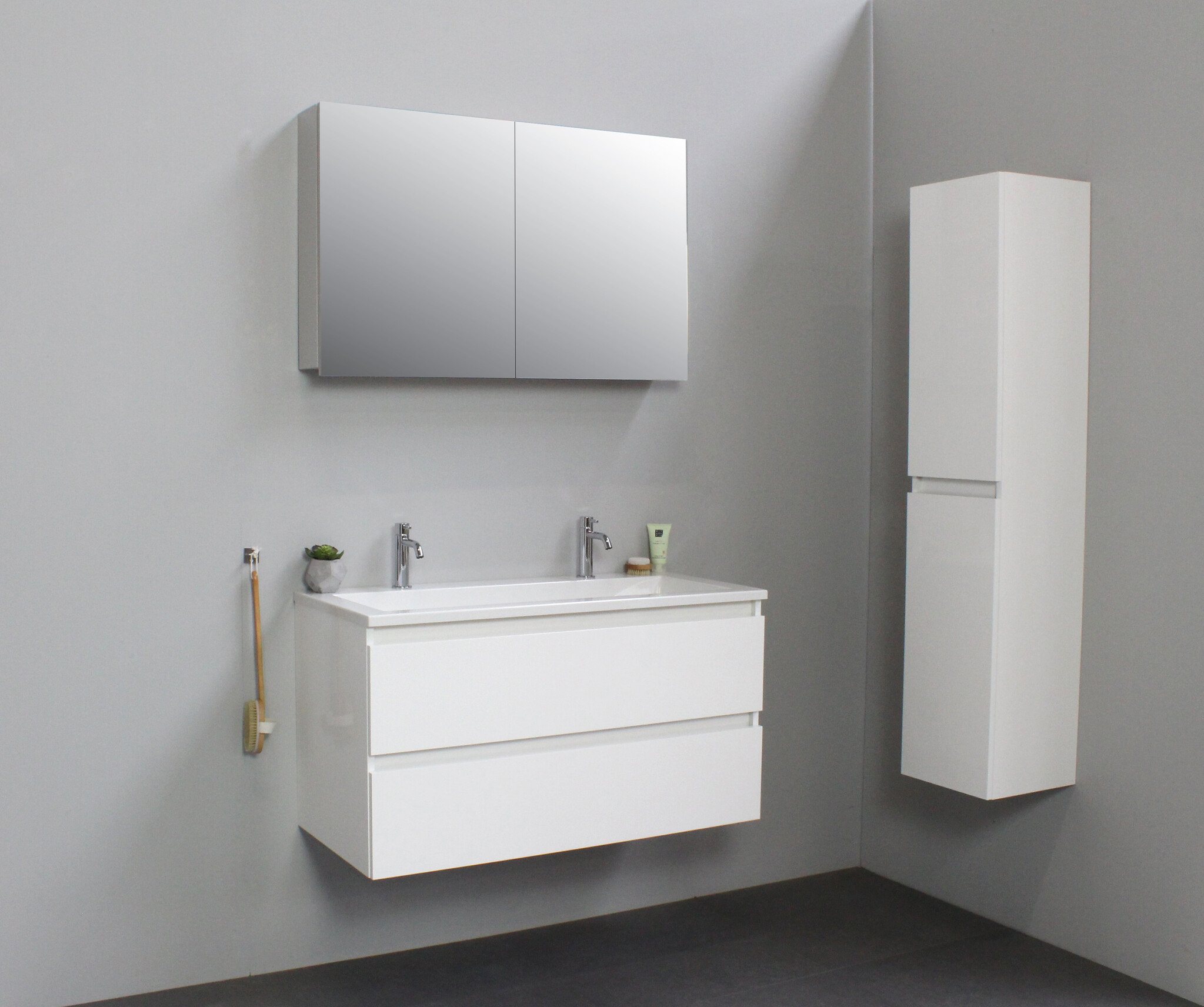 Solidline badkamermeubelset | 100cm | Acryl | Wit | 2 | Hoogglans wit | Met spiegelkast | Geassembleerd