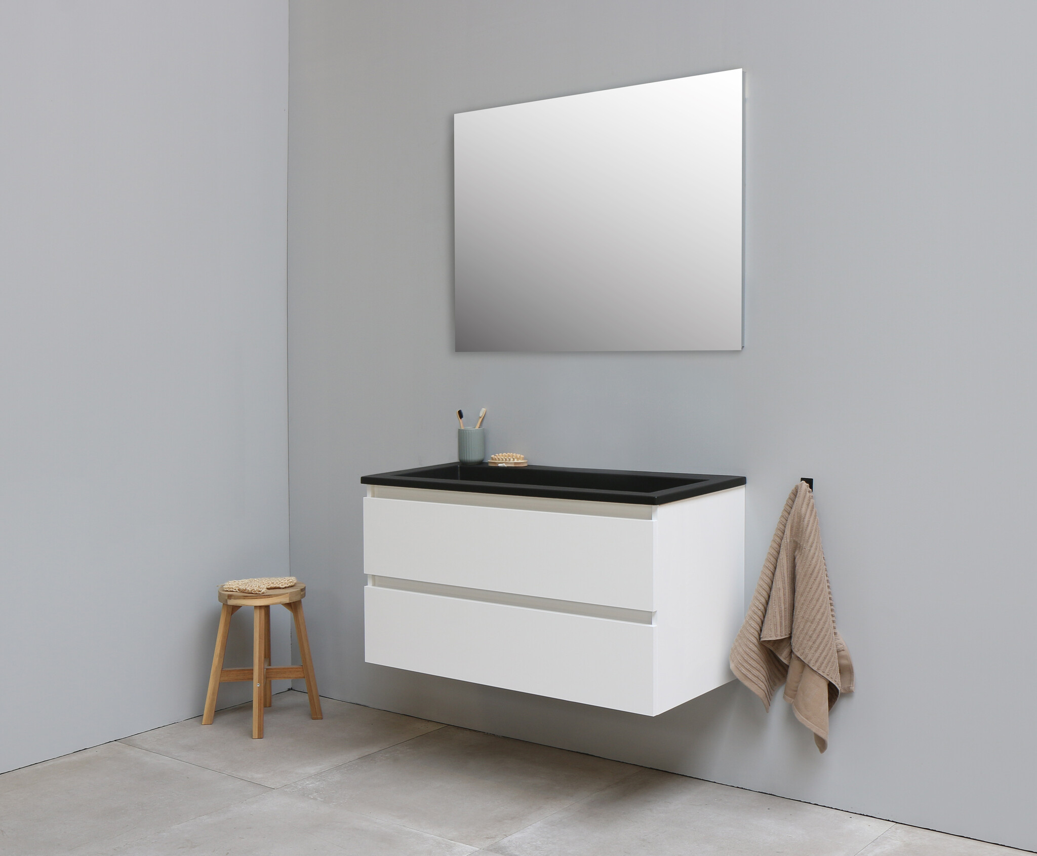 Offerte aanvraag voor Solidline badkamermeubelset | 100cm | Acryl | Mat zwart | 0 | Hoogglans wit | Standaard spiegel | Geassembleerd