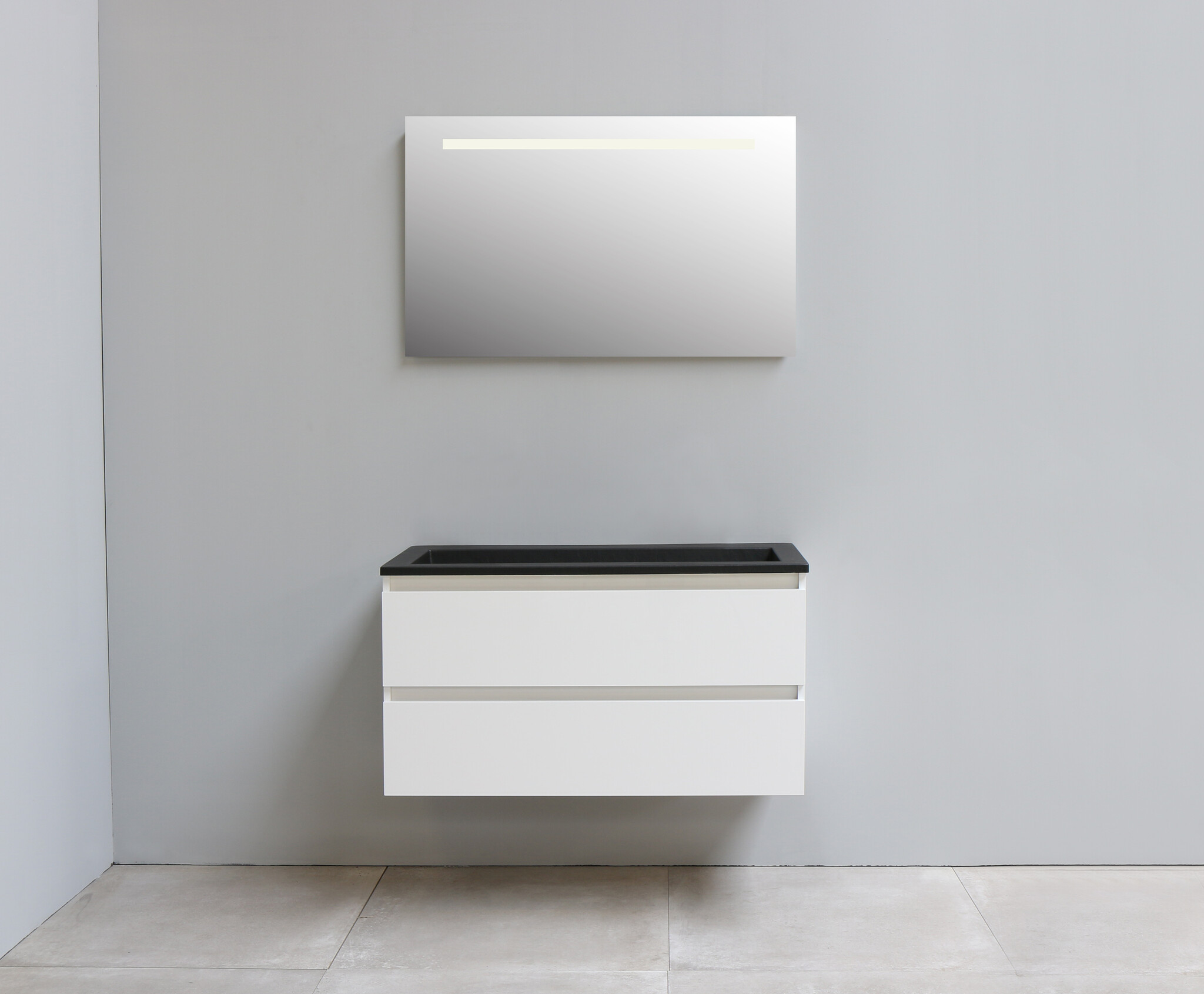 Solidline badkamermeubelset - 100cm - Acryl - Mat zwart - 0 - Hoogglans wit - Spiegel met LED verlichting - Geassembleerd