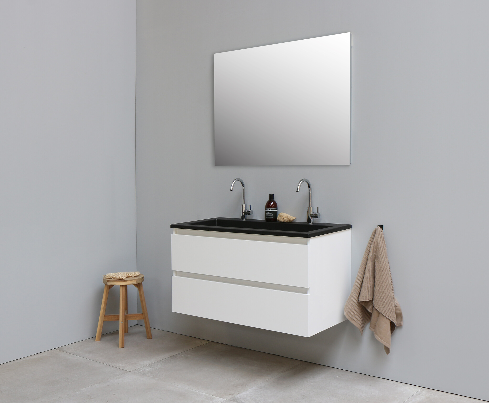 Solidline badkamermeubelset | 100cm | Acryl | Mat zwart | 2 | Hoogglans wit | Standaard spiegel | Geassembleerd