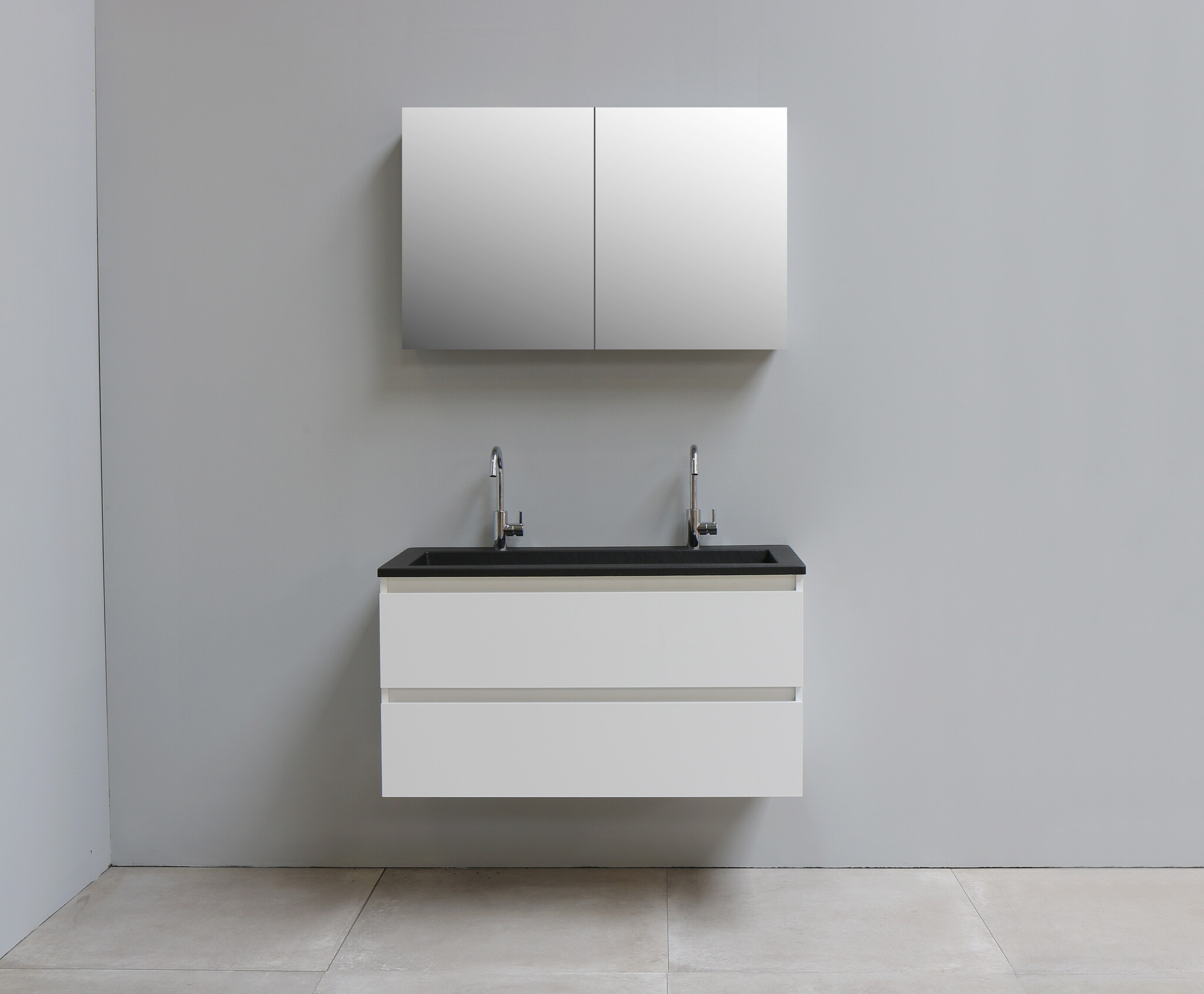 Solidline badkamermeubelset | 100cm | Acryl | Mat zwart | 2 | Hoogglans wit | Met spiegelkast | Geassembleerd