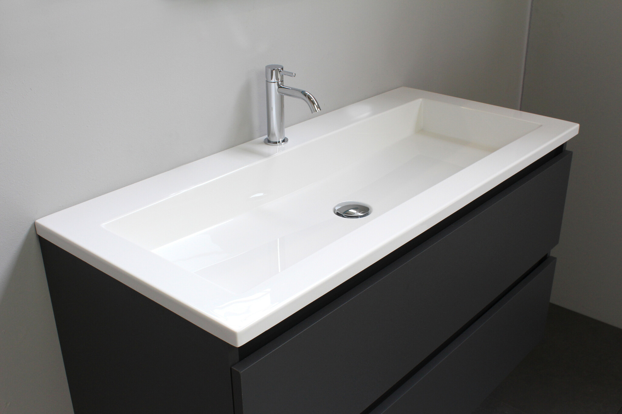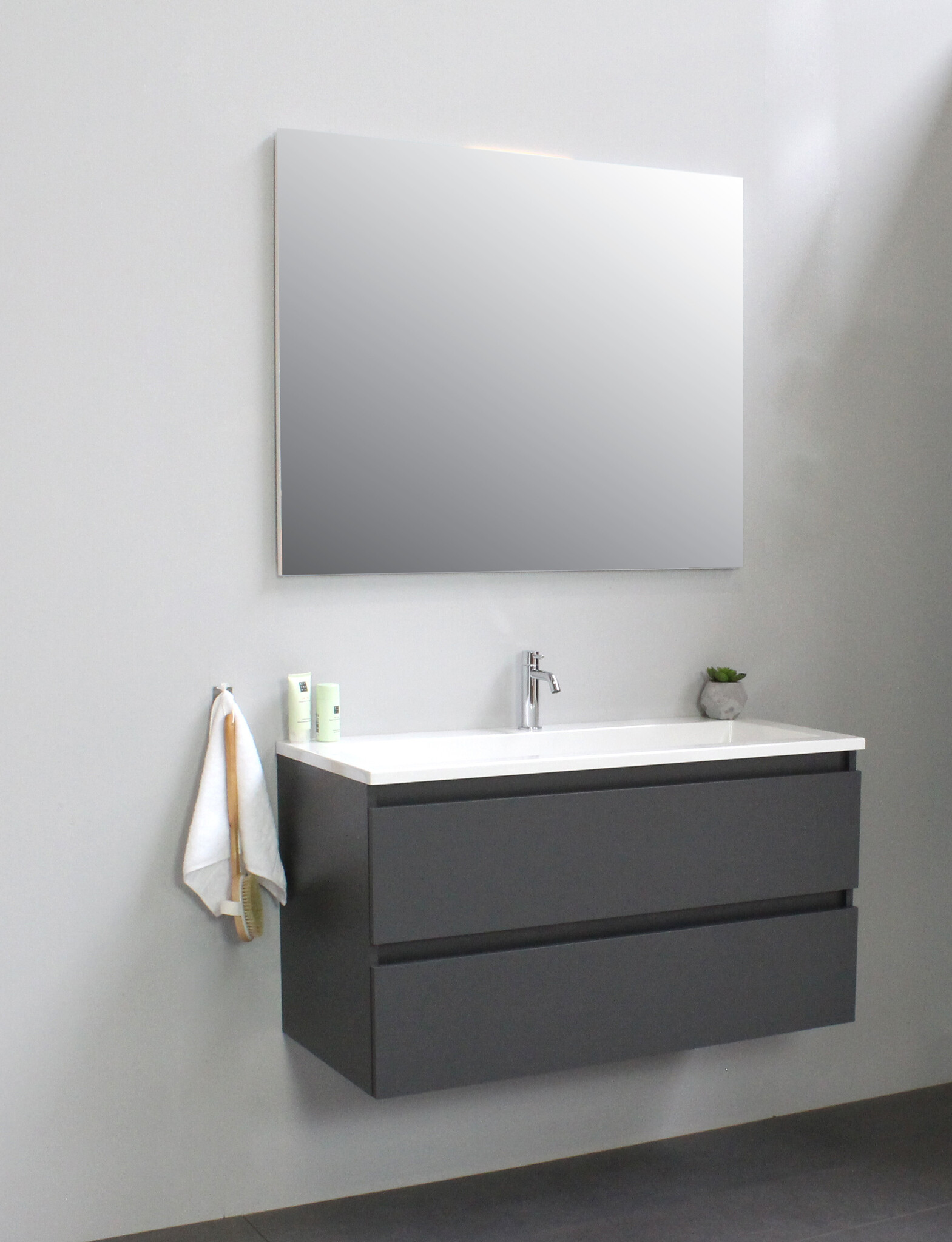 Solidline badkamermeubelset | 100cm | Acryl | Wit | 1 | Mat antraciet | Standaard spiegel | Geassembleerd