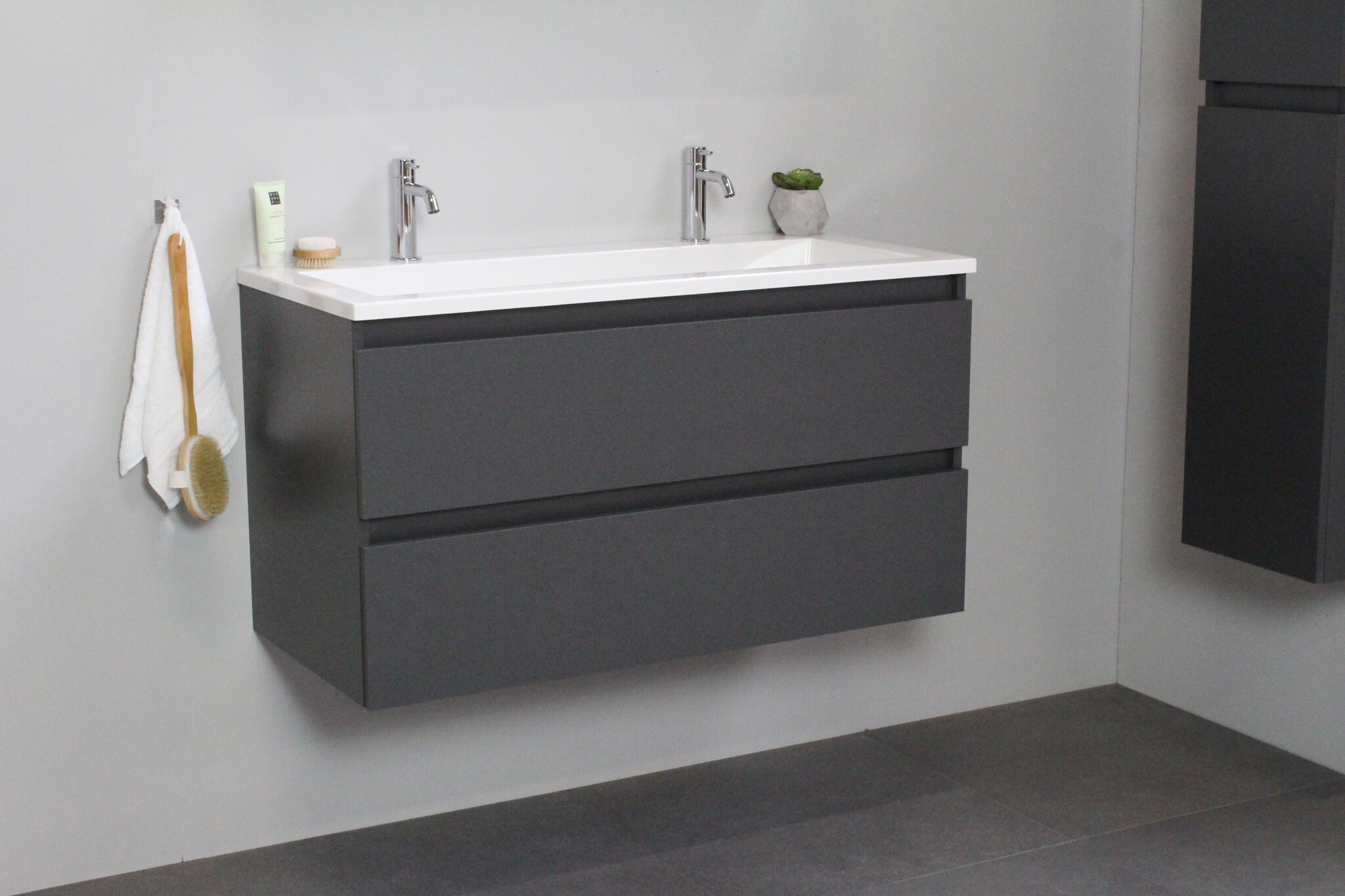 Offerte aanvraag voor Solidline badkamermeubelset | 100cm | Acryl | Wit | 2 | Mat antraciet | Zonder spiegel | Geassembleerd