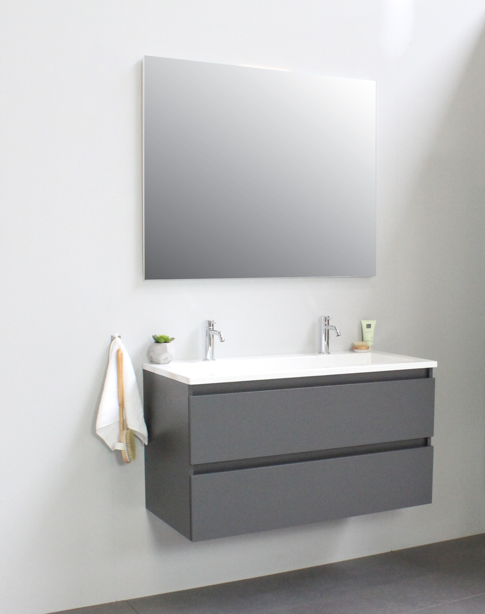 Offerte aanvraag voor Solidline badkamermeubelset | 100cm | Acryl | Wit | 2 | Mat antraciet | Standaard spiegel | Geassembleerd