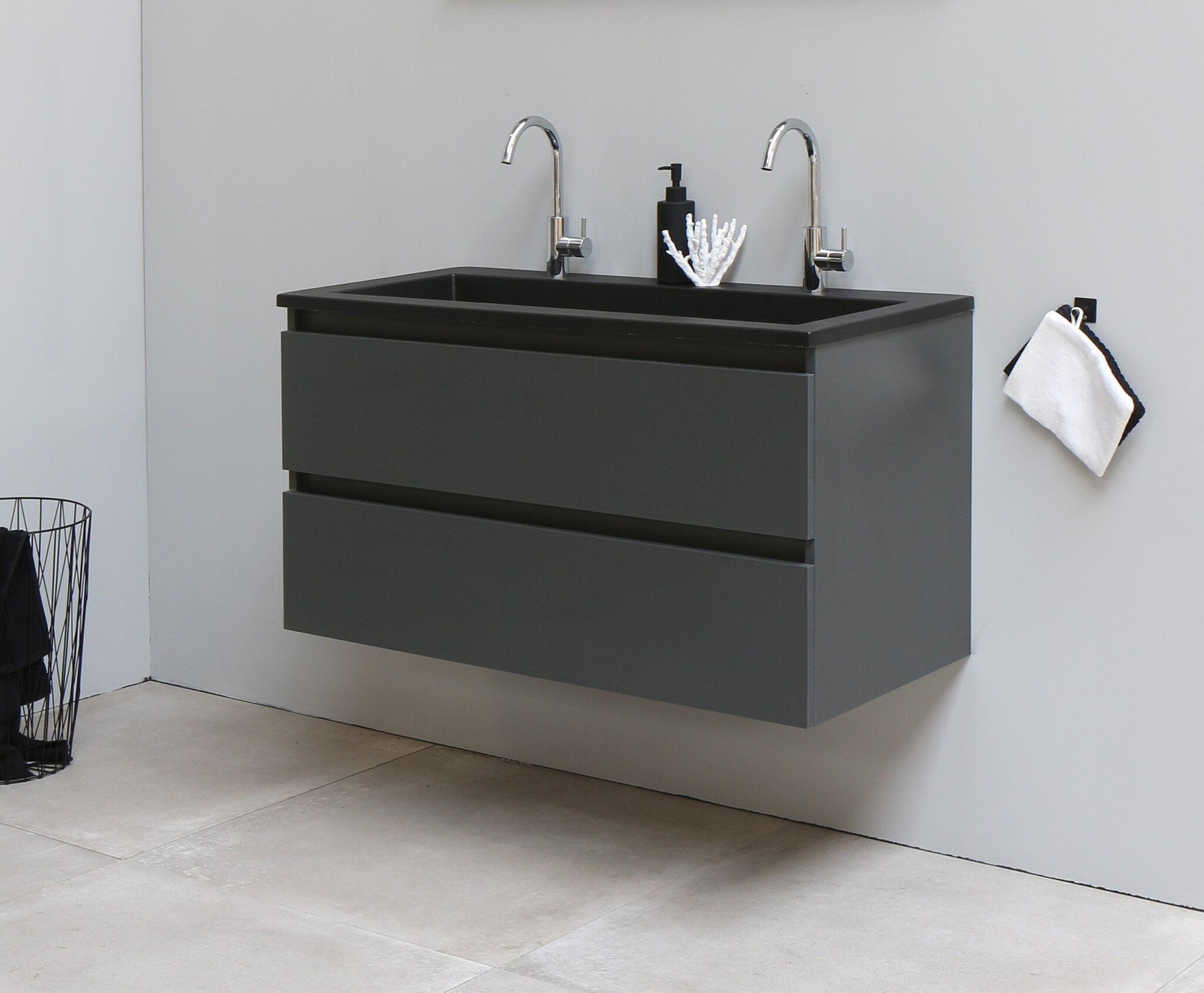 Solidline badkamermeubelset | 100cm | Acryl | Mat zwart | 2 | Mat antraciet | Zonder spiegel | Geassembleerd