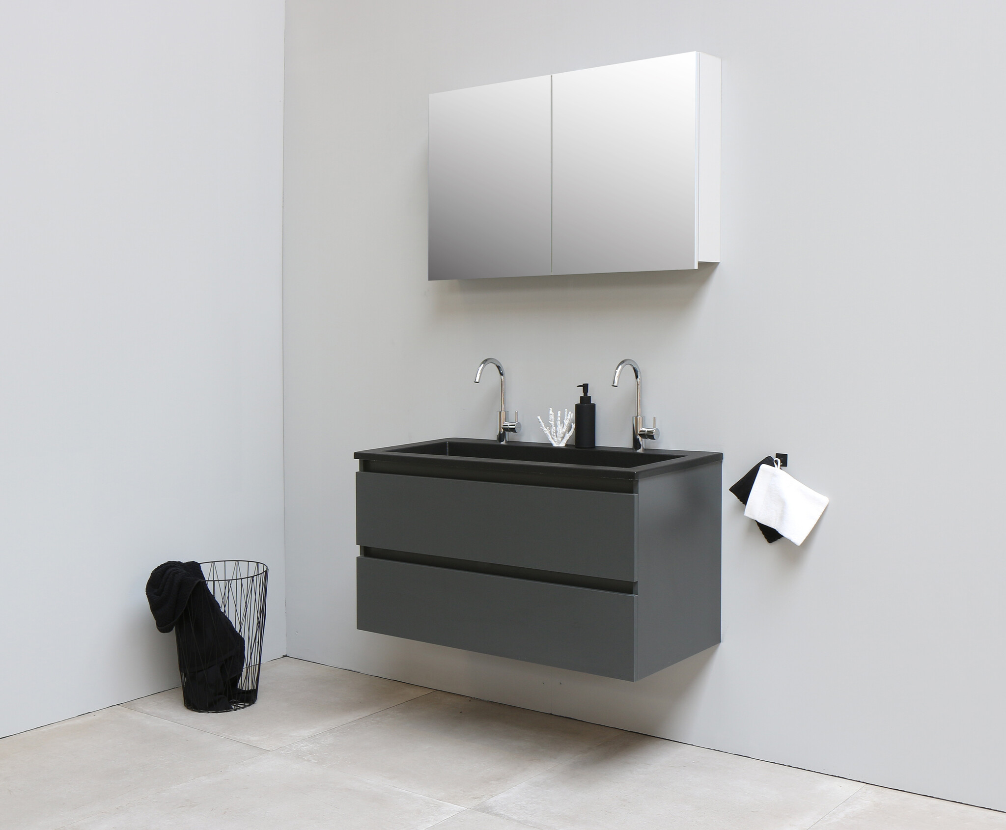 Solidline badkamermeubelset | 100cm | Acryl | Mat zwart | 2 | Mat antraciet | Met spiegelkast | Geassembleerd