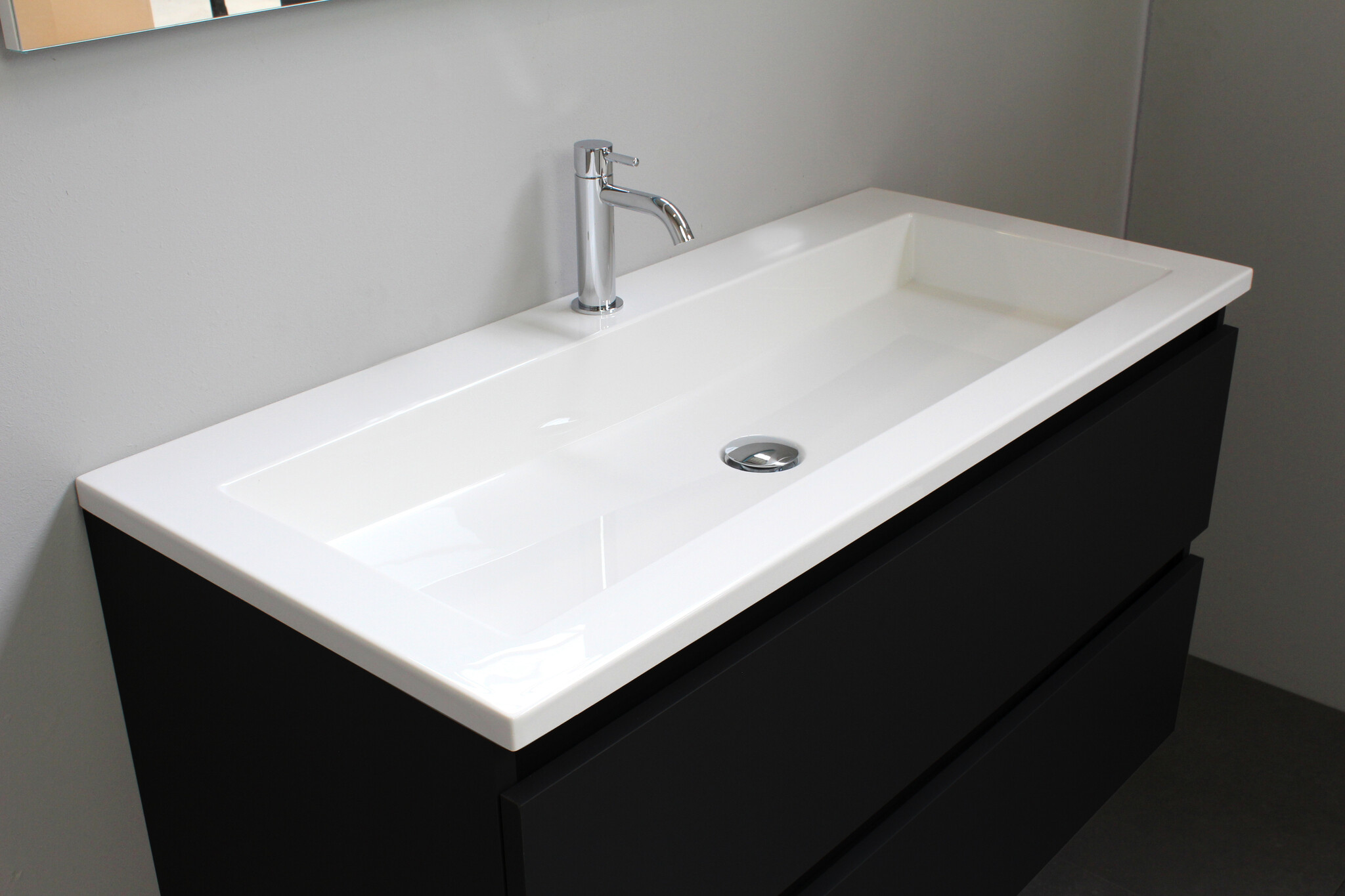 Solidline badkamermeubelset - 100cm - Acryl - Wit - 1 - Mat zwart - Zonder spiegel - Geassembleerd